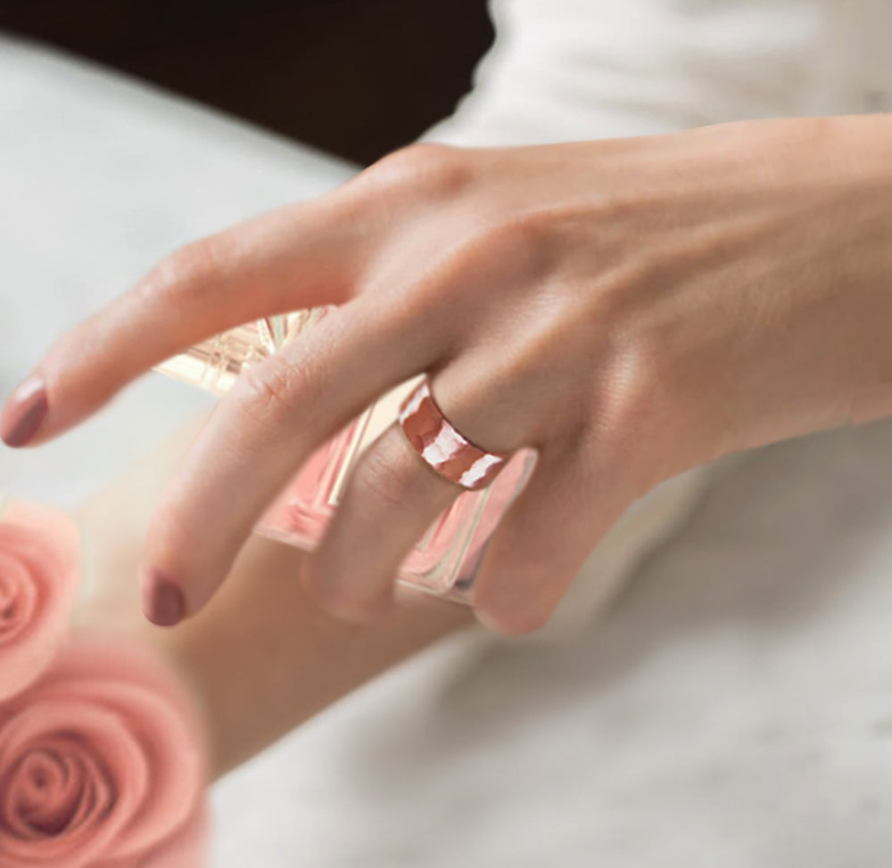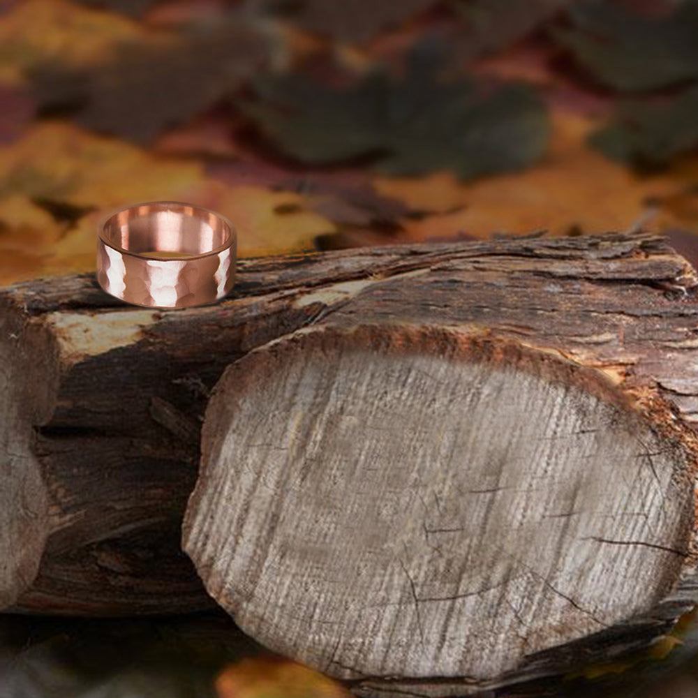 Pure Uncoated Hammered Copper Therapy Ring, 8mm