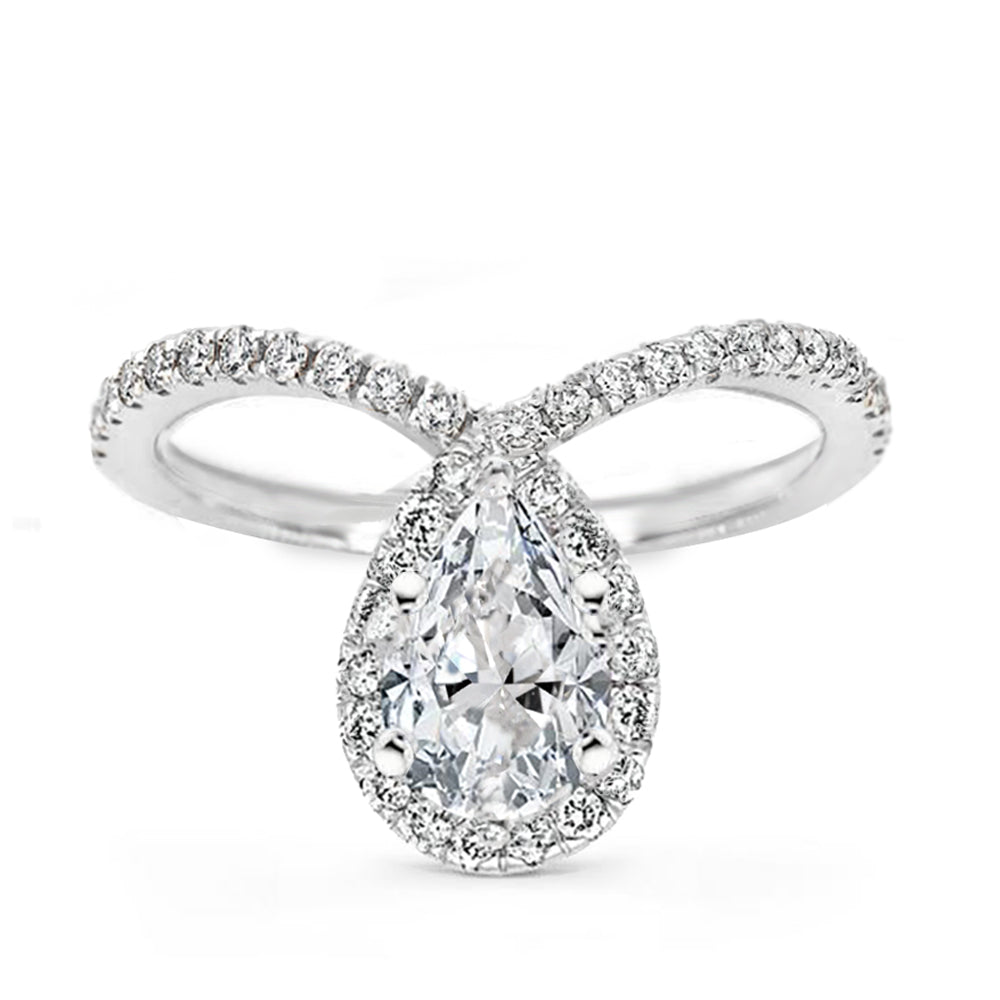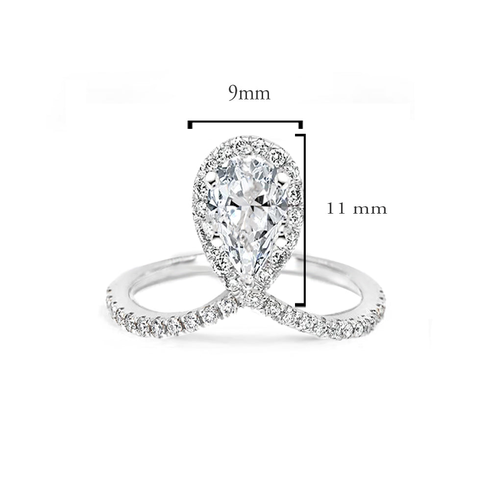 1.2ctw Pear Shaped Halo CZ Chevron Ring