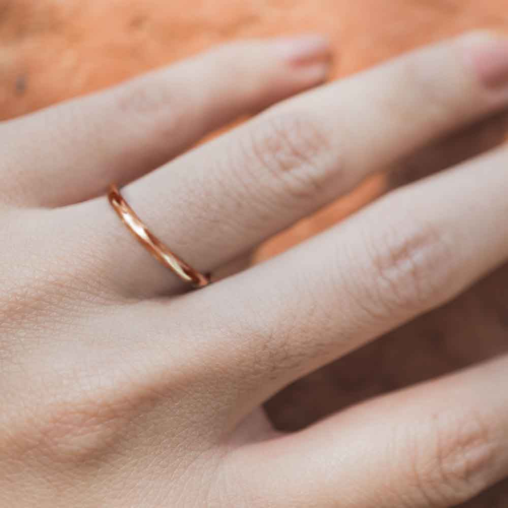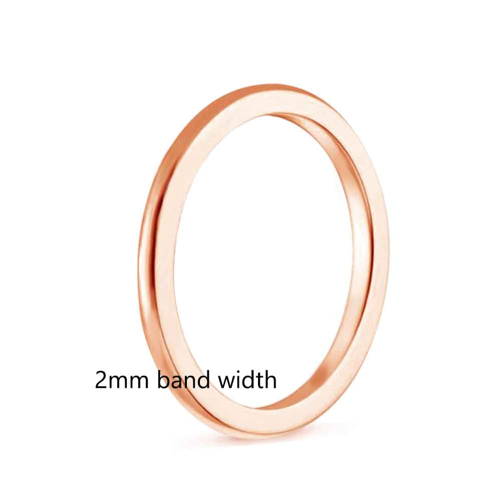 - 2mm band width. Plain 316L stainless steel wedding band in genuine rose gold plating.