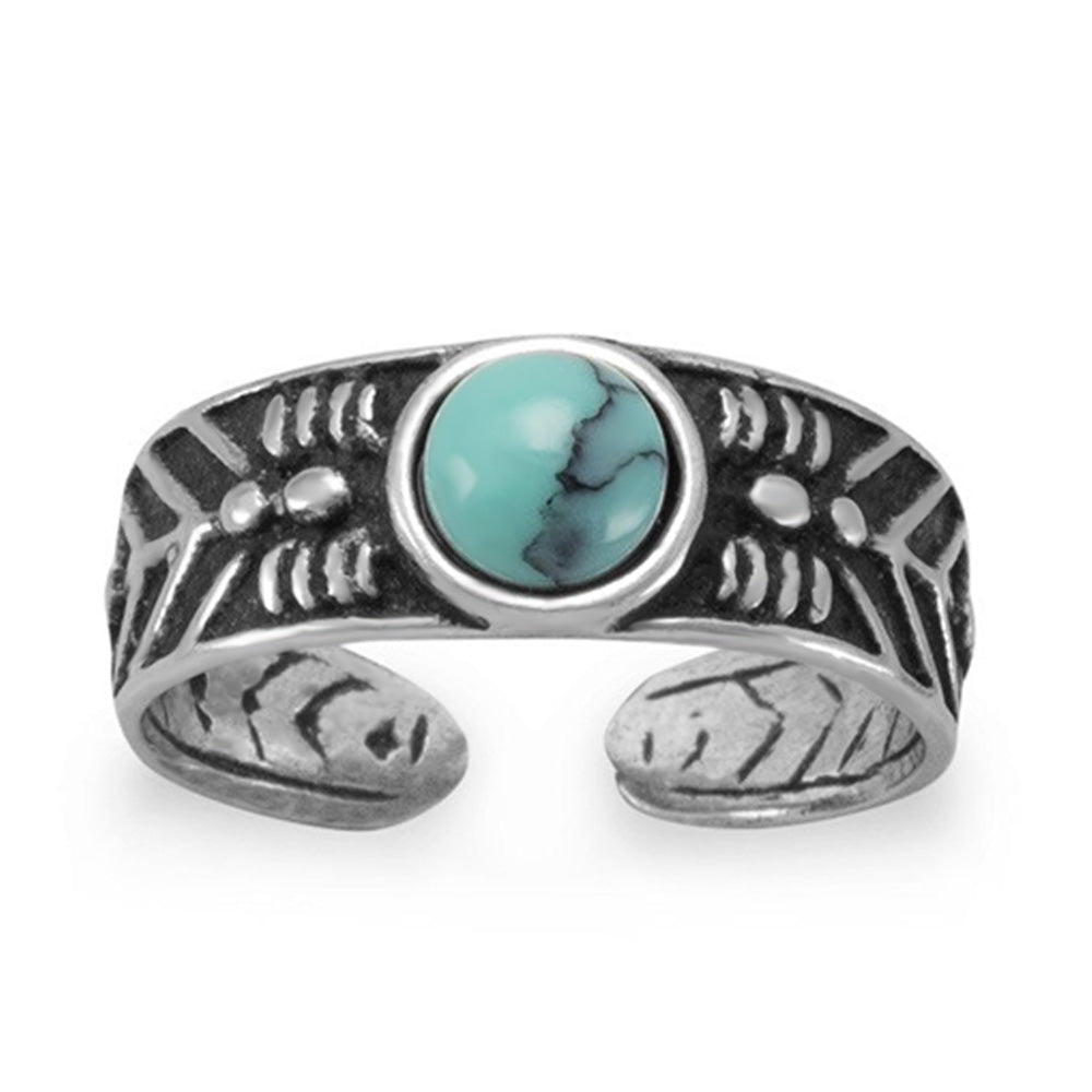 Oxidized Sterling Silver Toe Ring with Simulated Turquoise