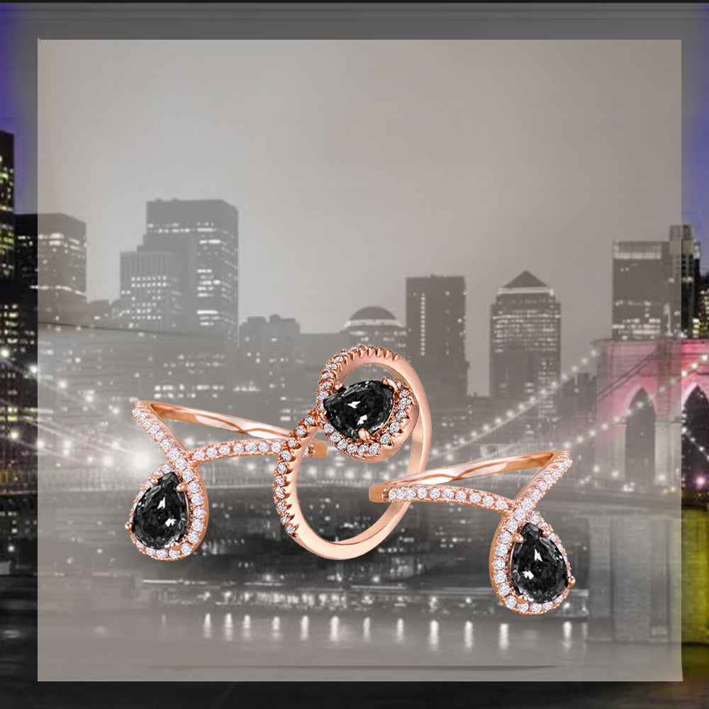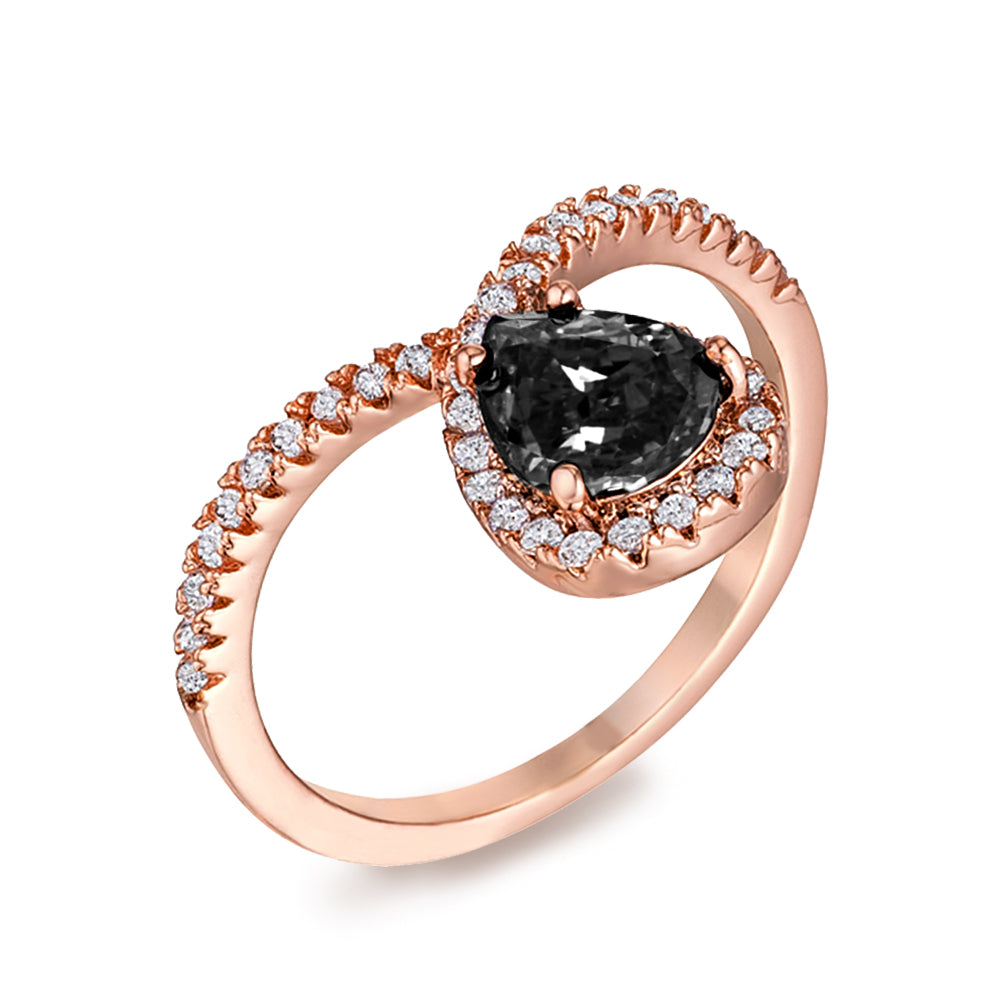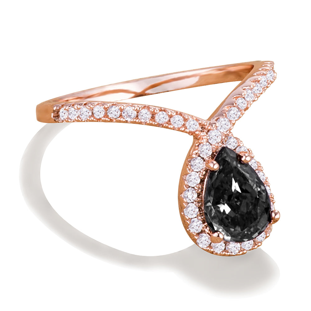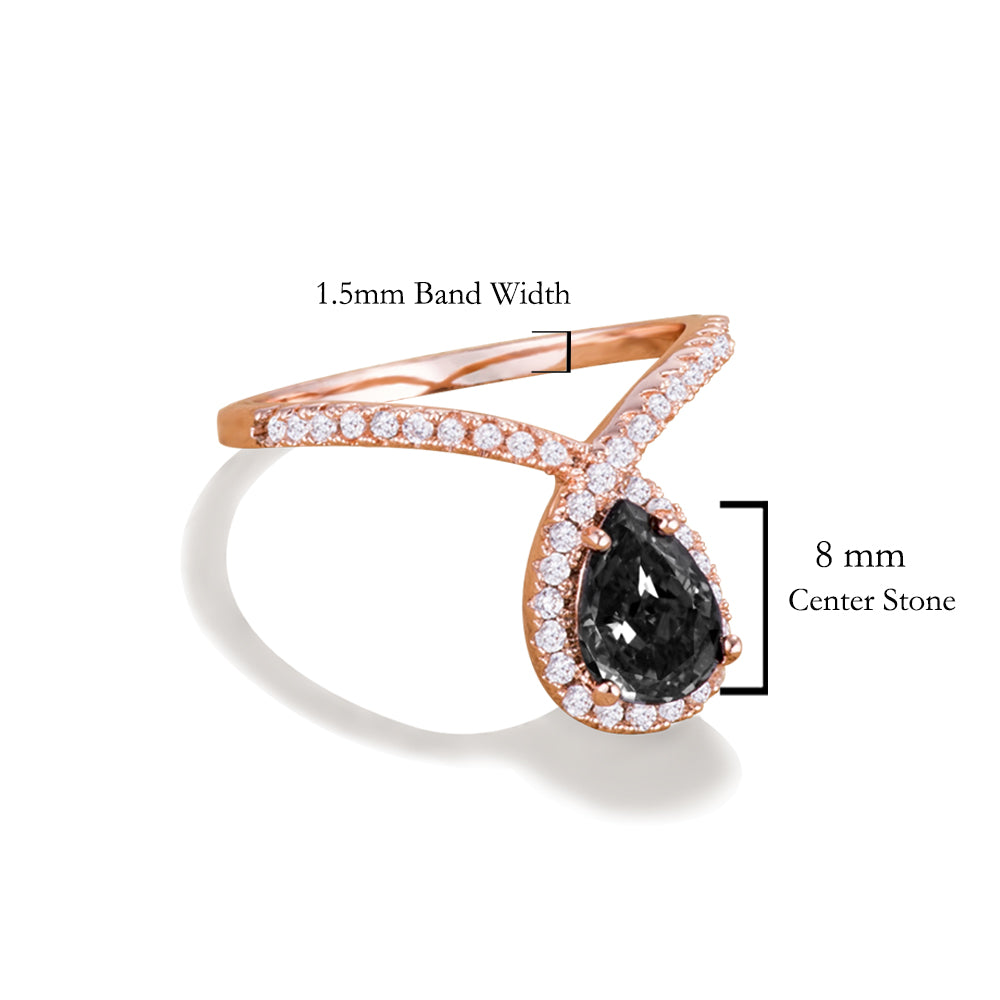 1.5ctw Pear Shaped Black CZ Chevron Ring in Rose Gold Plating
