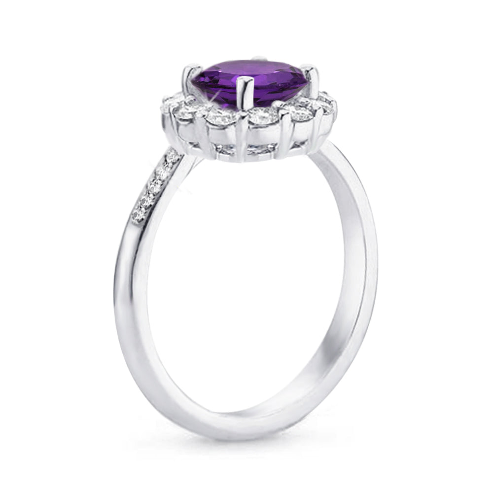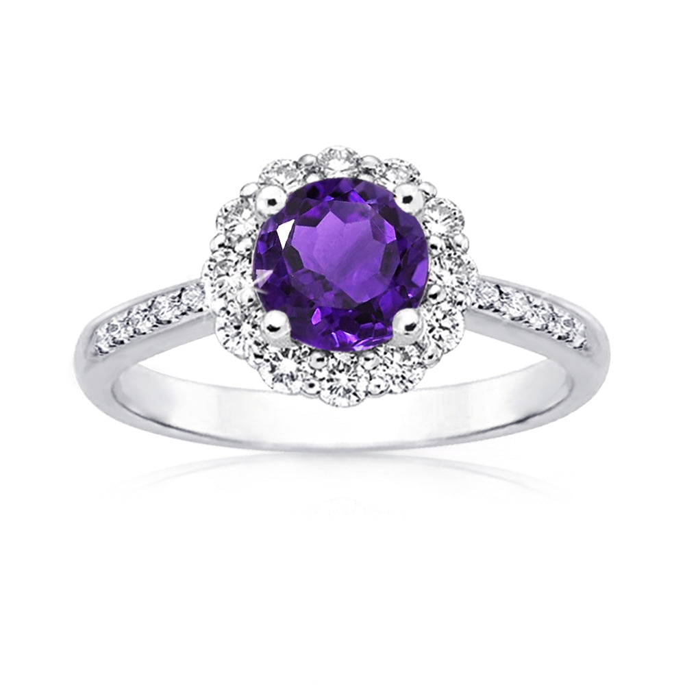 1.5ctw Amethyst Purple CZ Flower Halo Engagement Rings