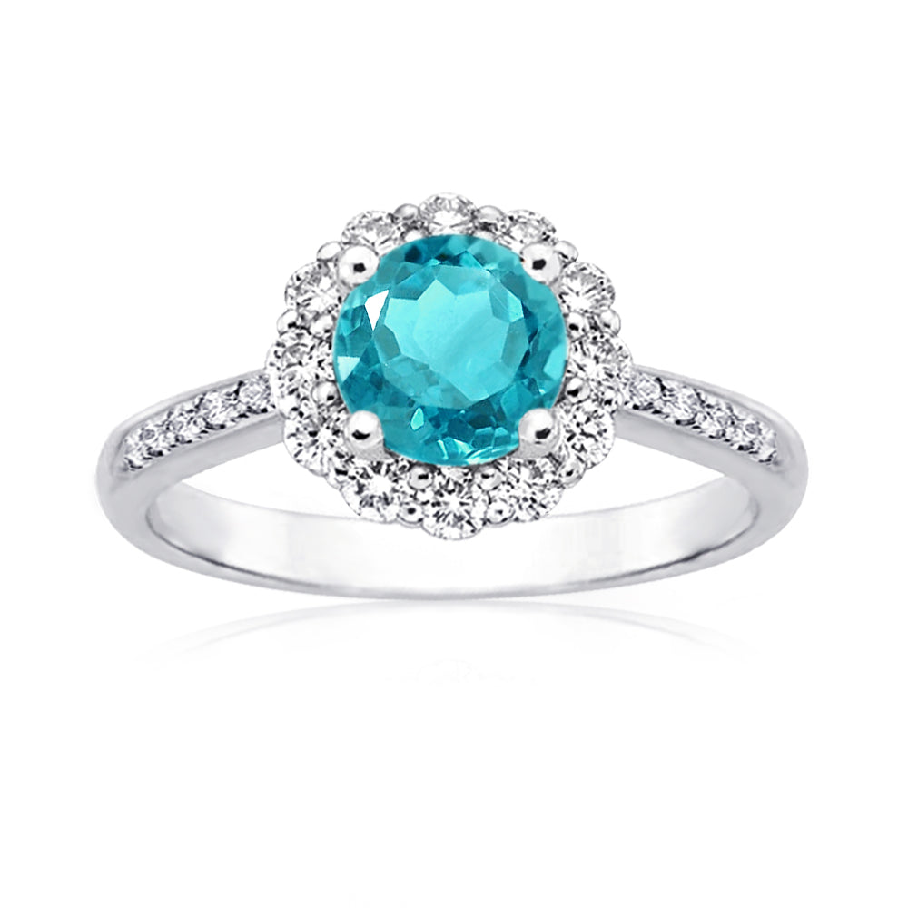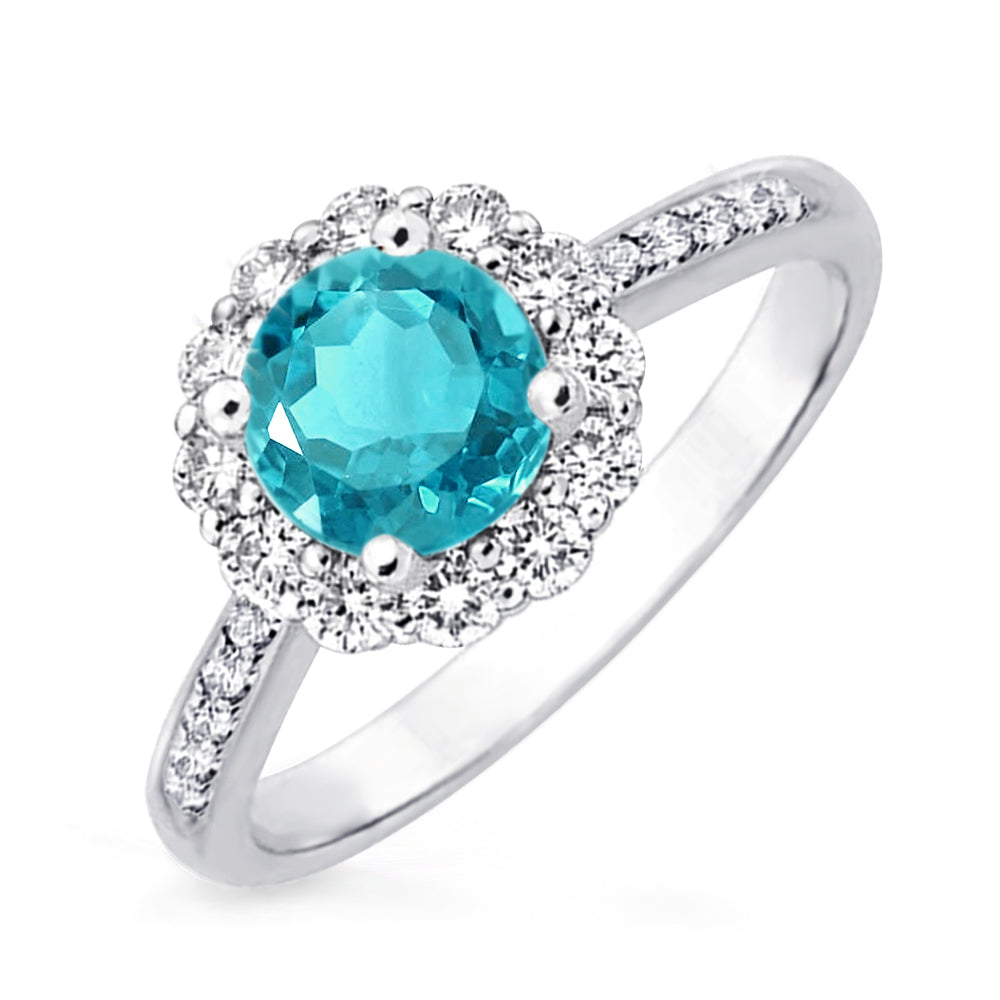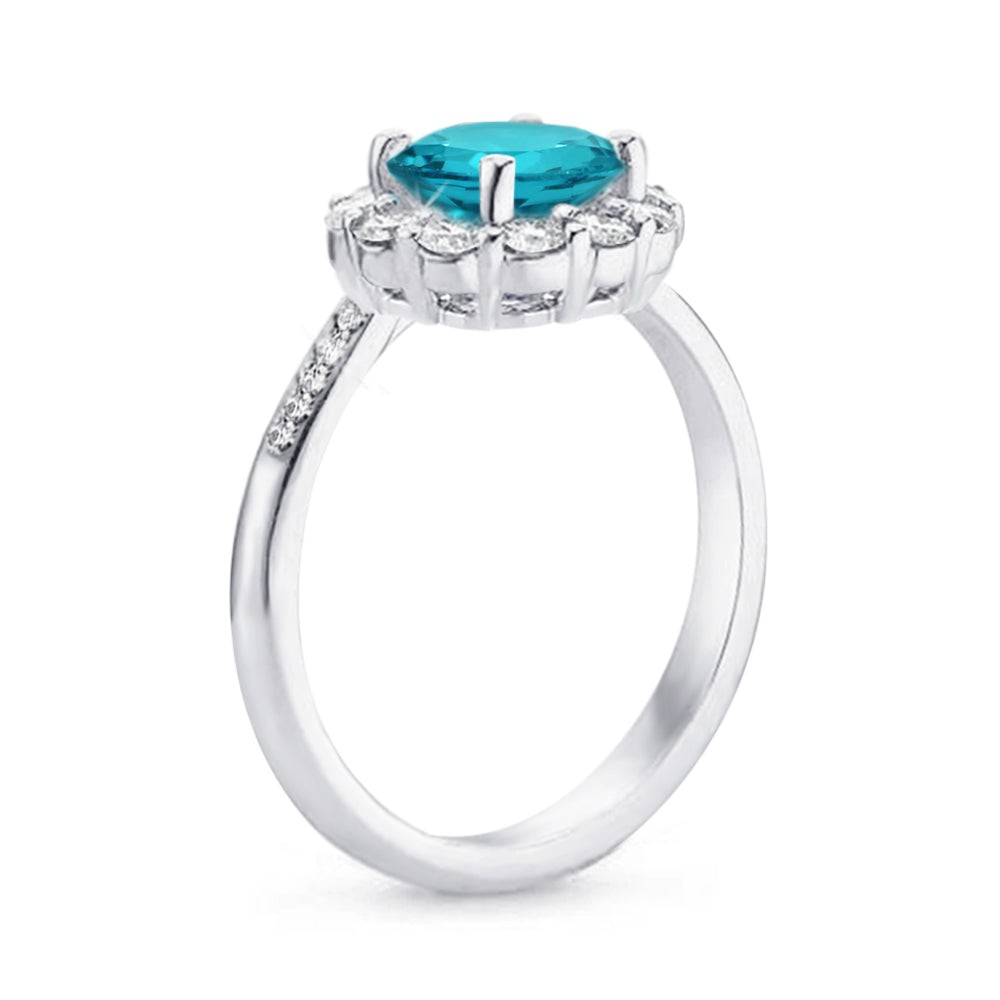 1.5ctw Zircon Blue CZ Flower Halo Engagement Rings