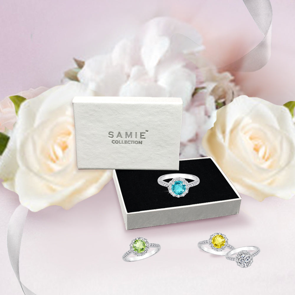 Featuring a halo design, our December birthstone engagement ring features an alluring center stone with Zircon color. The clear accents and lustrous silver tone capture the light, enhancing the beauty of your birth color.