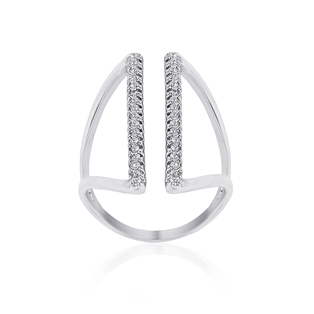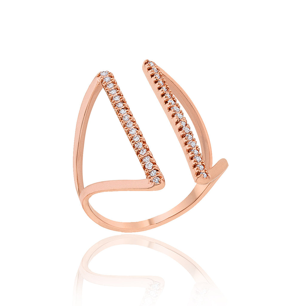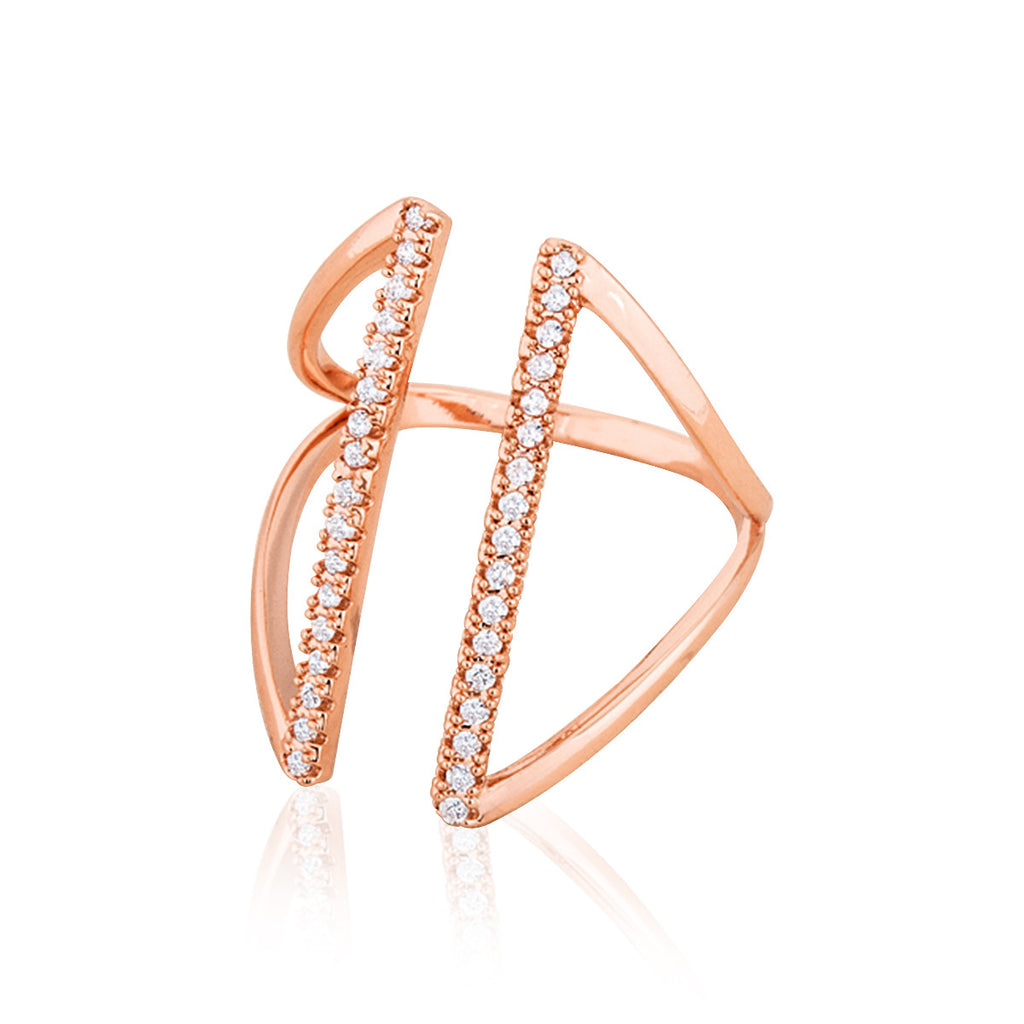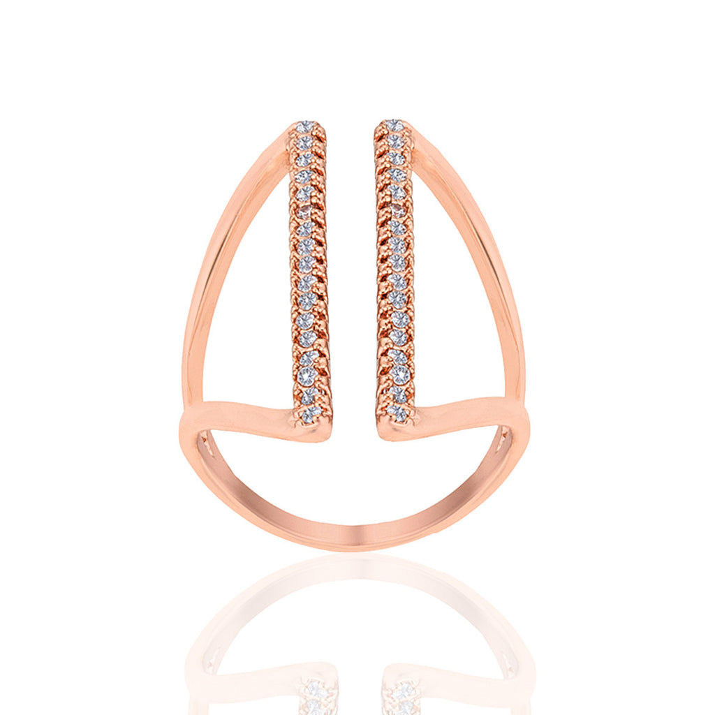 Highly refined 18K gold plated ring sparkles with clear cubic zirconia in pavé setting. The feminine and contemporary design is easy to create a trendy look with your personal signature.