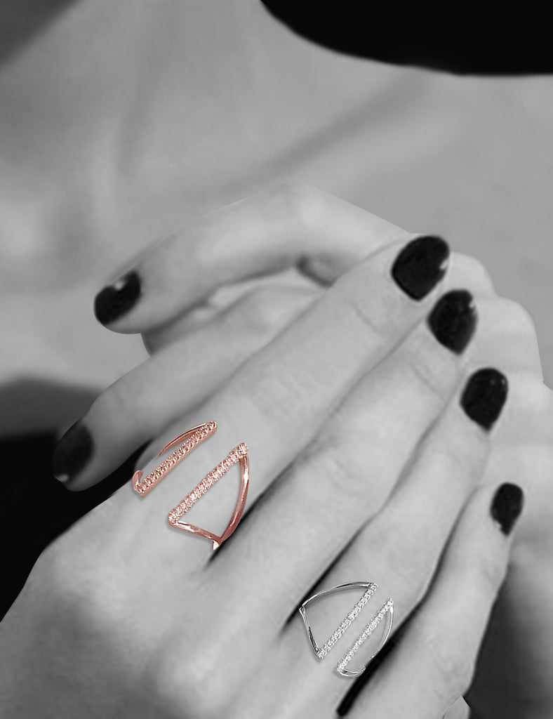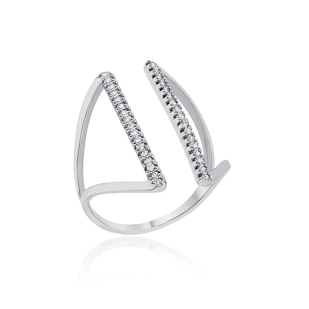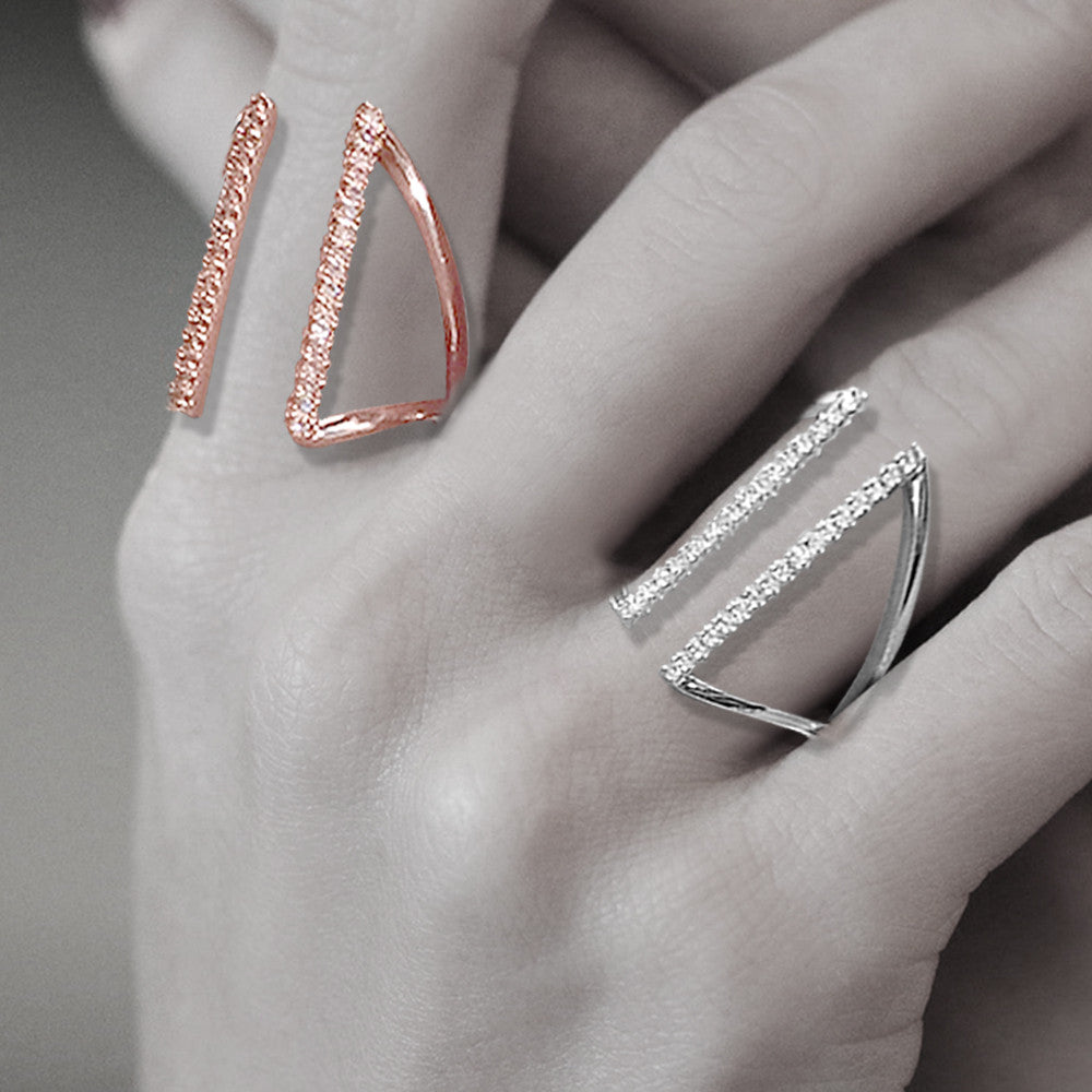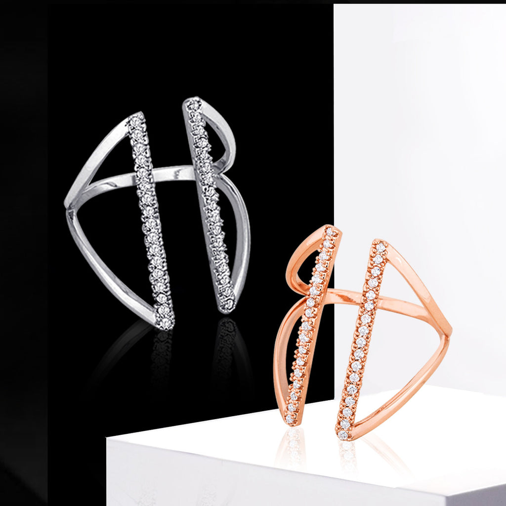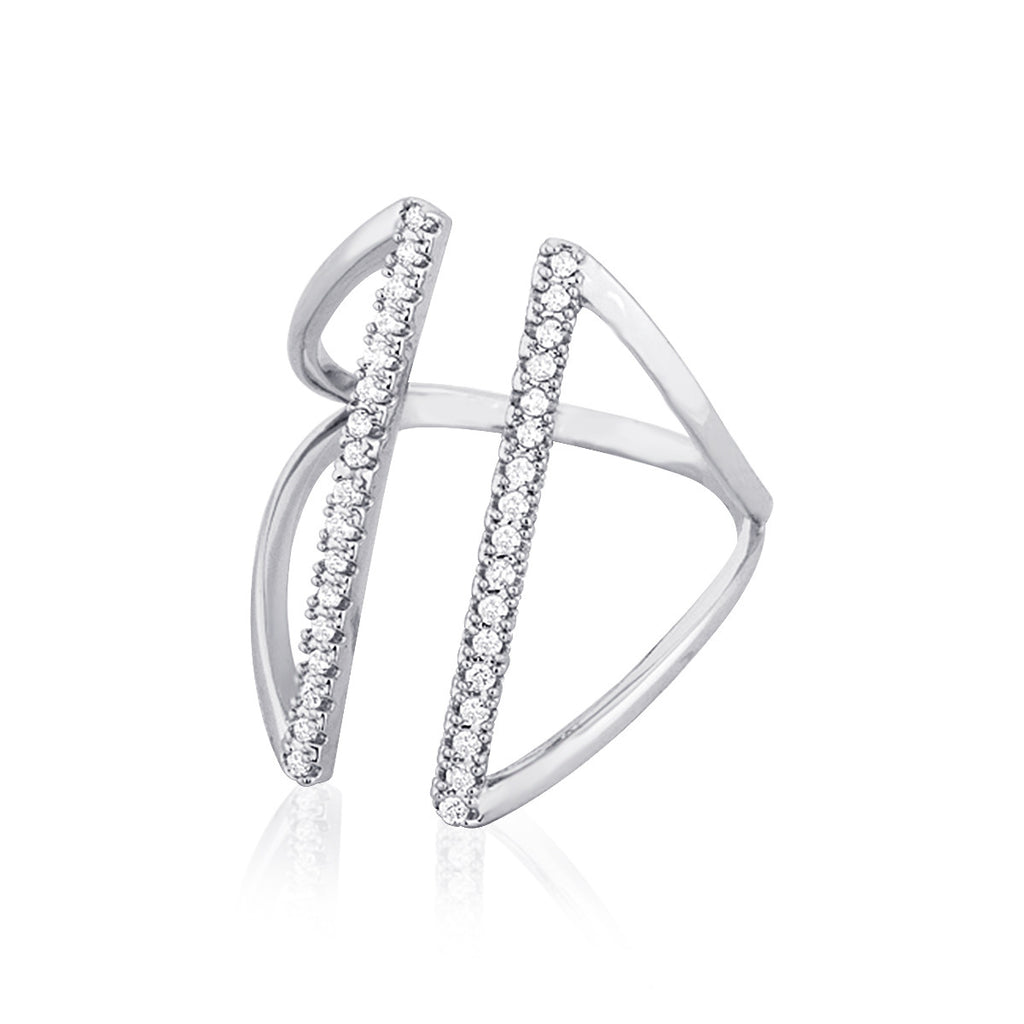 Highly refined 18K gold plated ring sparkles with clear cubic zirconia in pavé setting. The feminine and contemporary design is easy to create a trendy look with your personal signature.