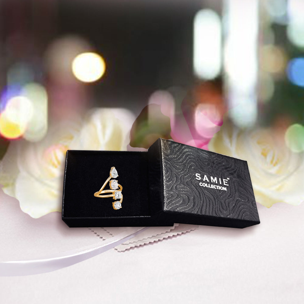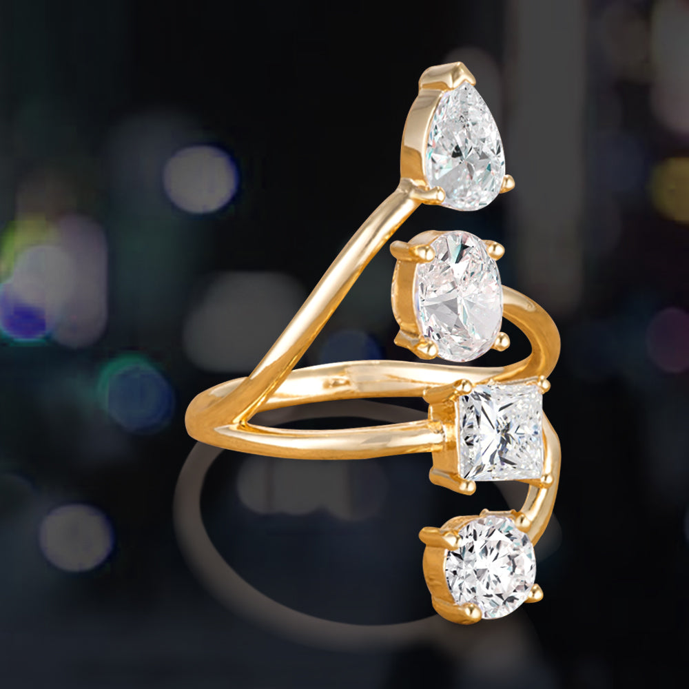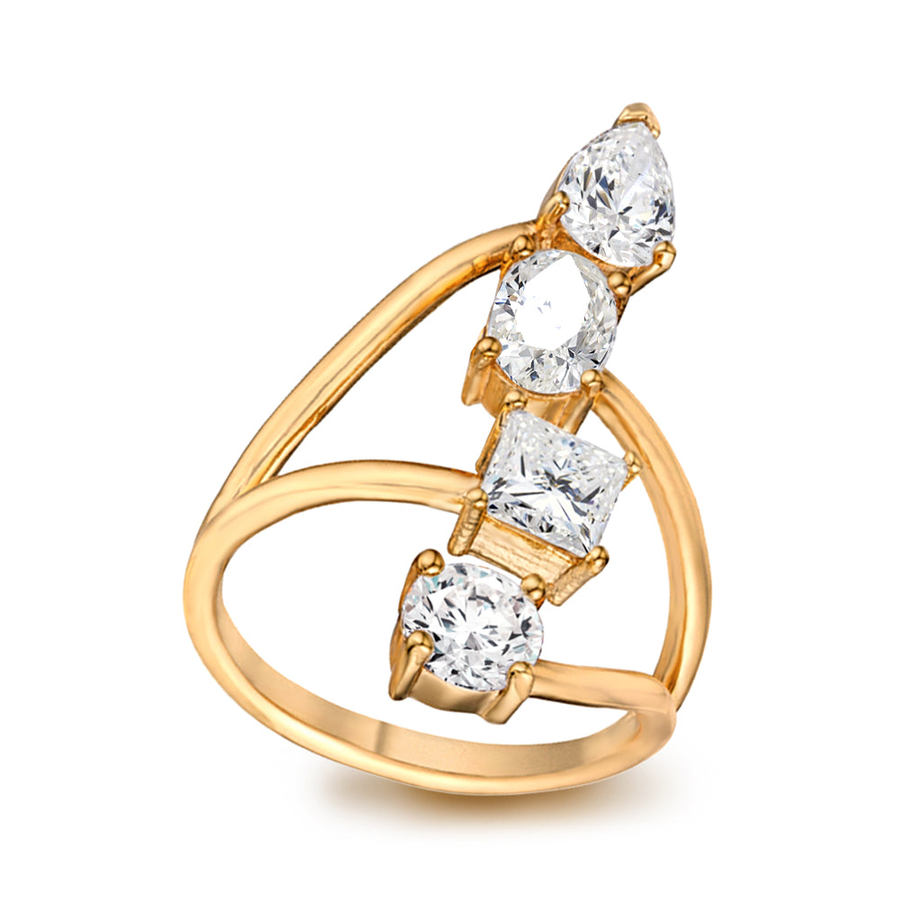 A medly of different stone cuts come together neatly aligned for a gorgeous display in this gold plated swirl ring. Masterfully crafted and set in prong setting, this ring makes for a beautiful accent to any outfit.