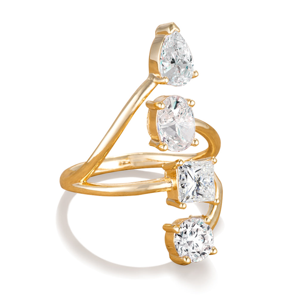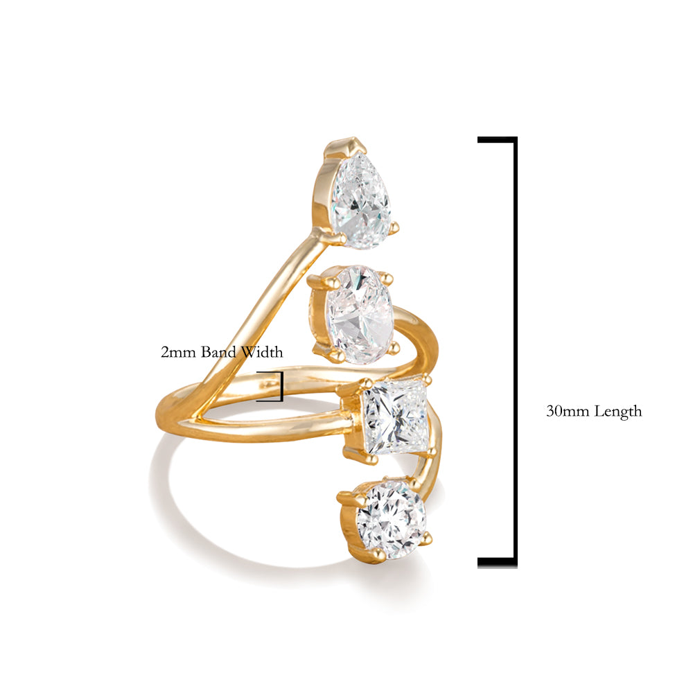 3.02ctw Multi-Shape CZ Swirl Ring in Gold Plating