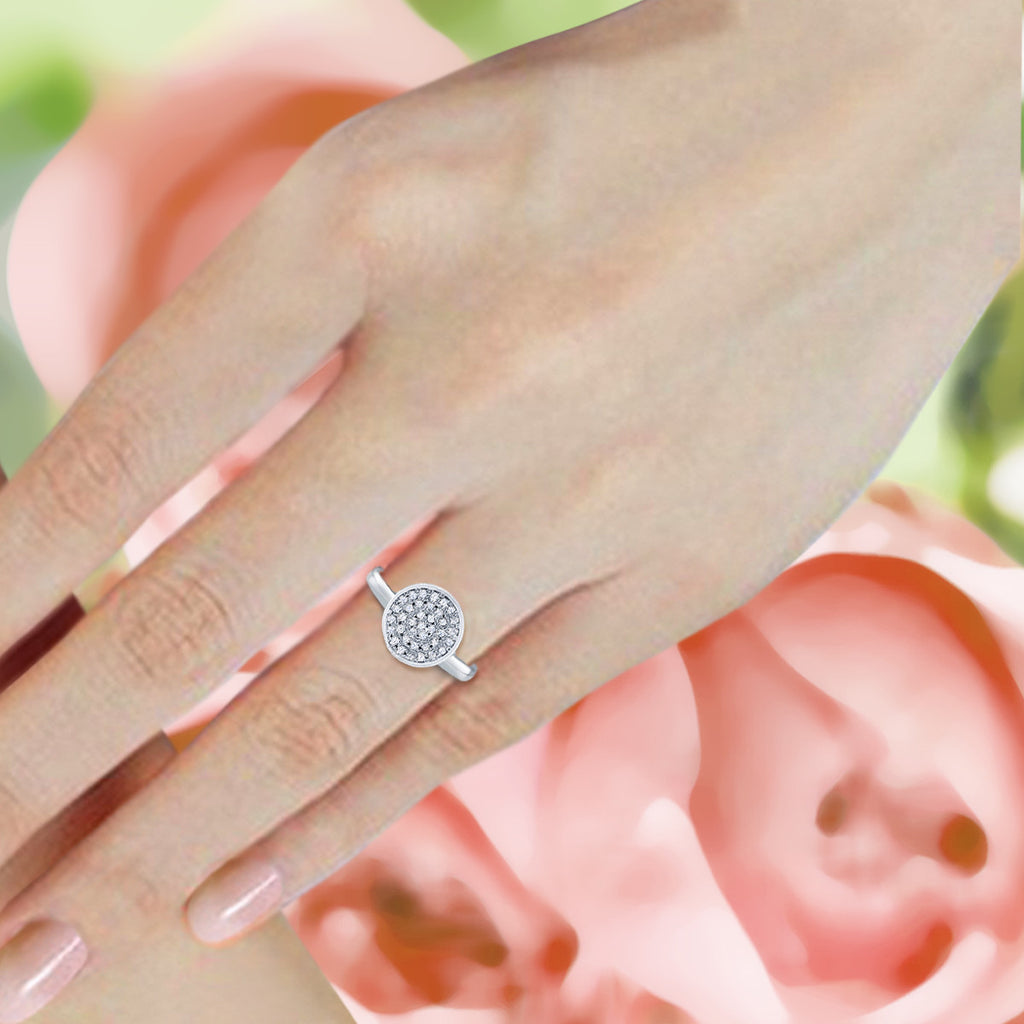 Classic yet contemporary romantic ring is embellished with a cluster of pavé stones for a sleek sparkle. Enhance your look for your special day!