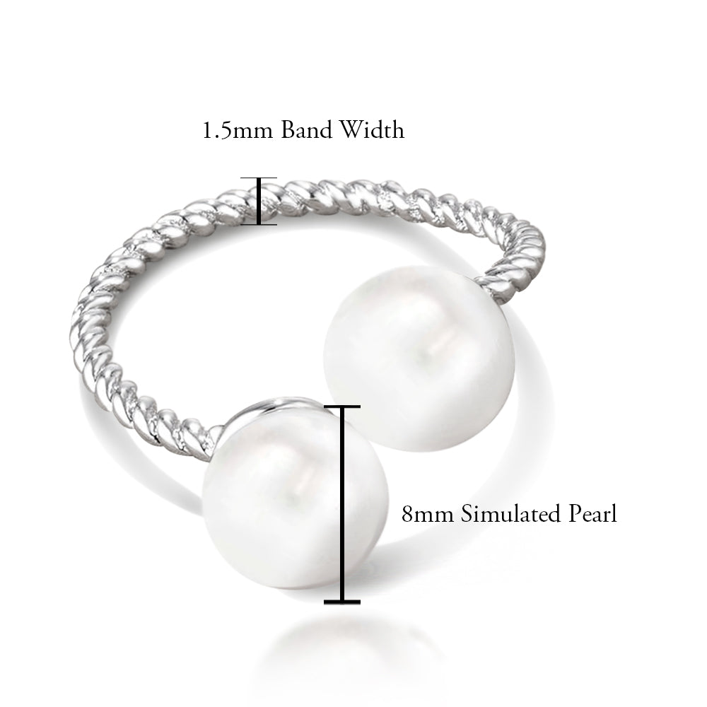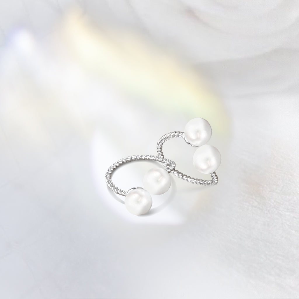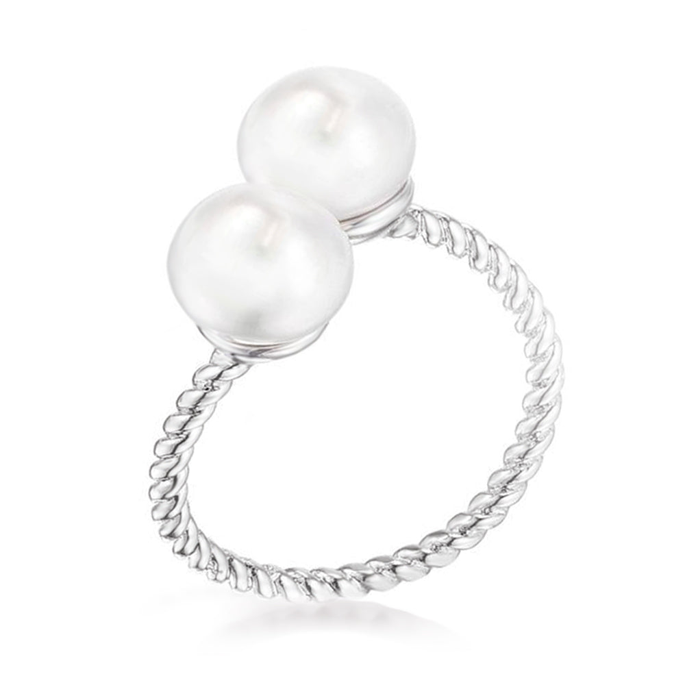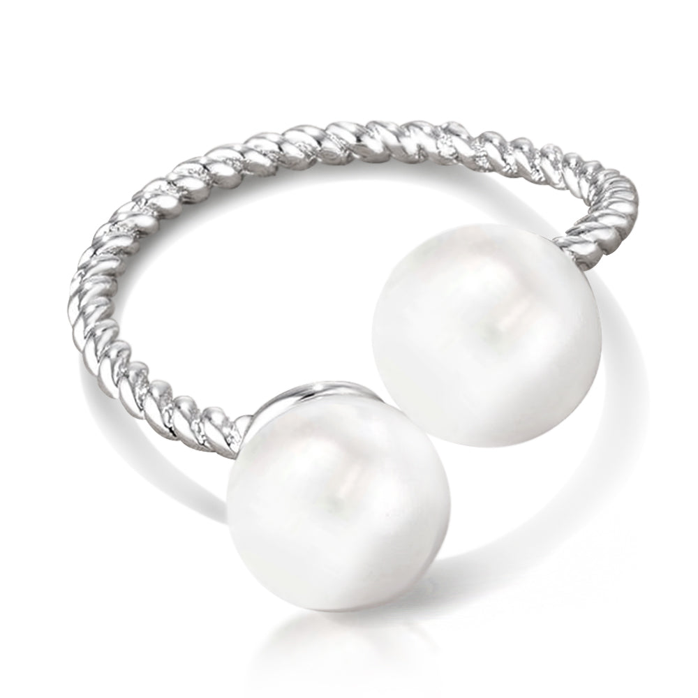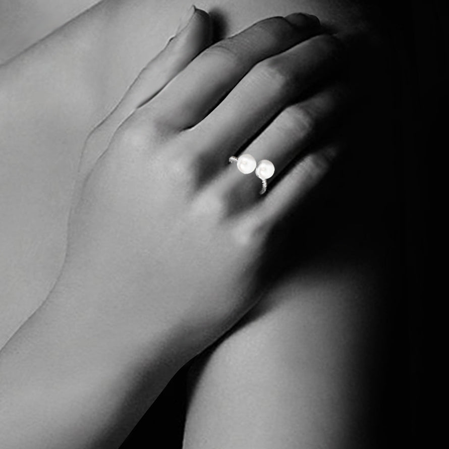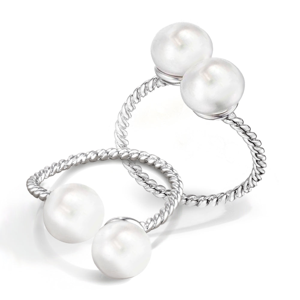 This must-have contemporary cable ring echoes the bold and lavish design of the iconic elegance of modern Jazz. A timeless classic, this double pearl ring adds instant glamour to any look.