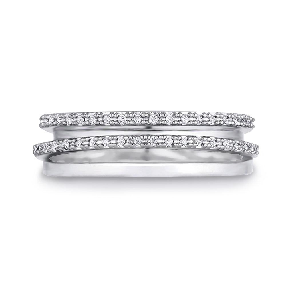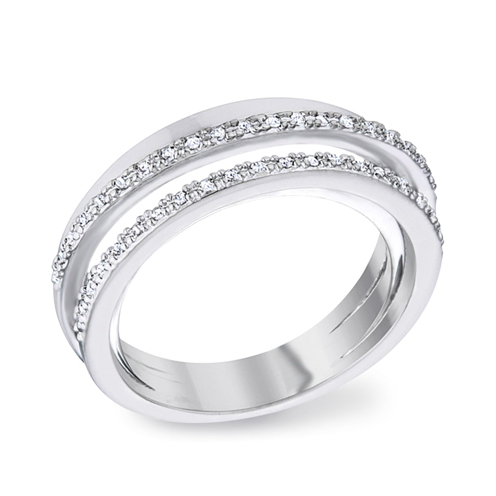 Crossover Ring with 0.2ctw CZ in Rhodium Plating