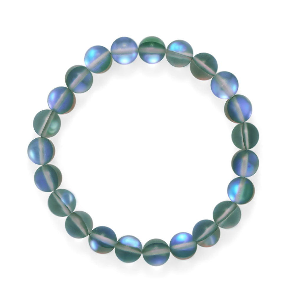 Mermaid Kisses Iridescent Green Glass Beads Stretch Bracelet, Stackable, 8.5mm