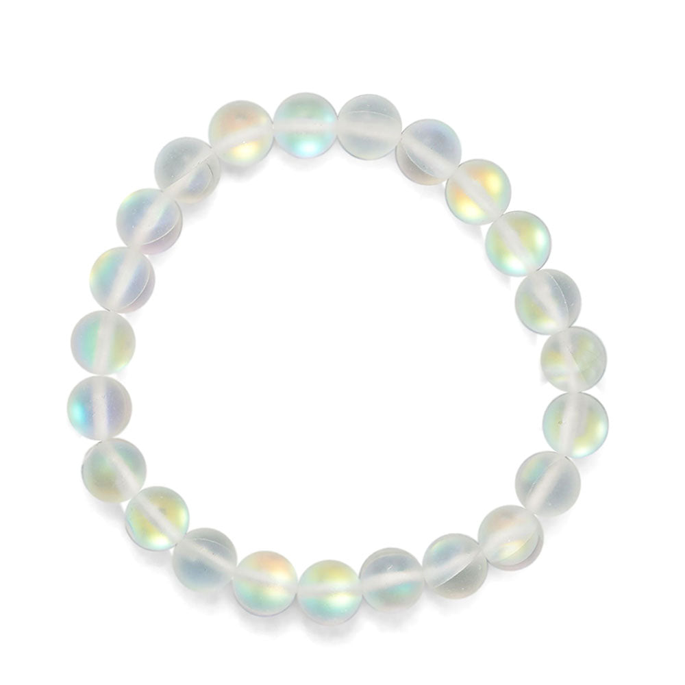 Mermaid Kisses Iridescent Rainbow Glass Beads Stretch Bracelet, Stackable, 8.5mm