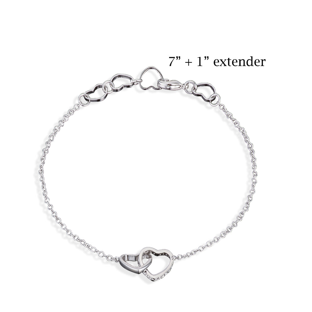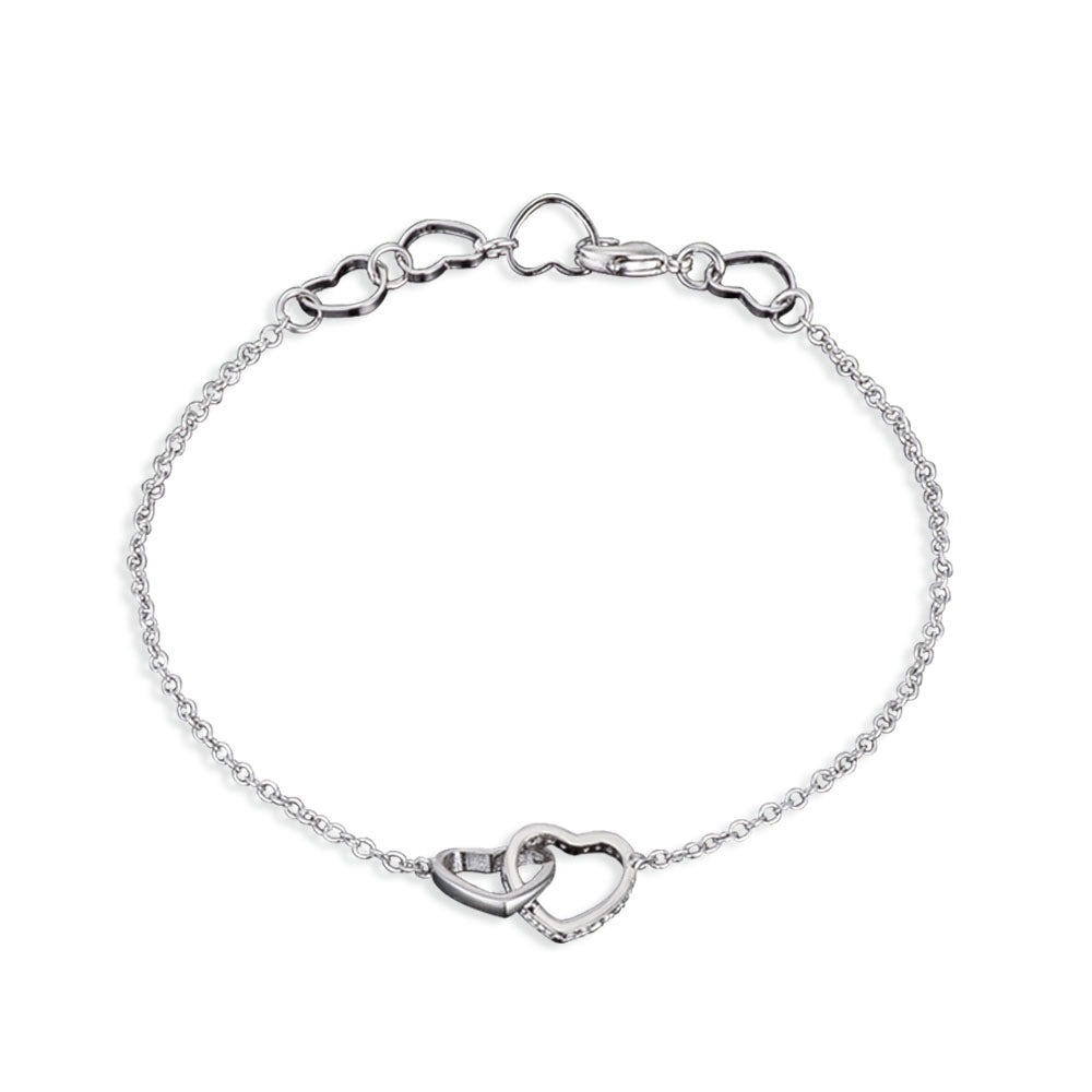 Hearts Link Bracelet with CZ in Rhodium Plating