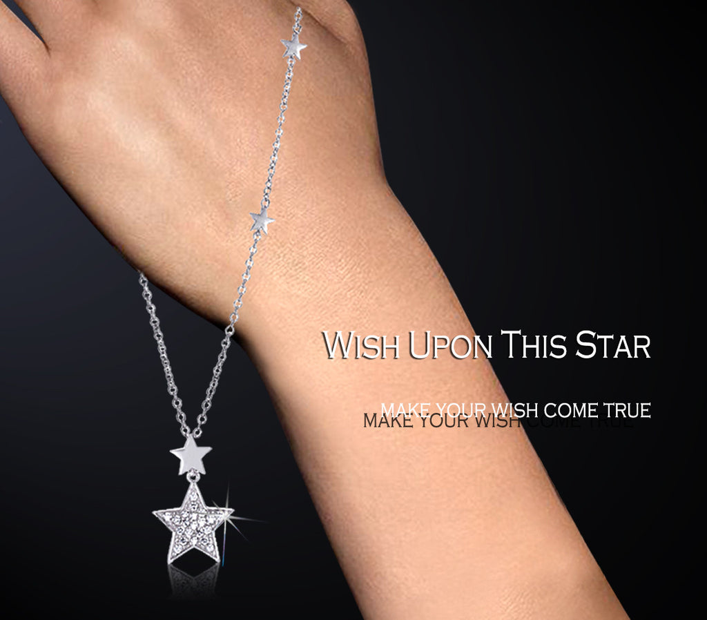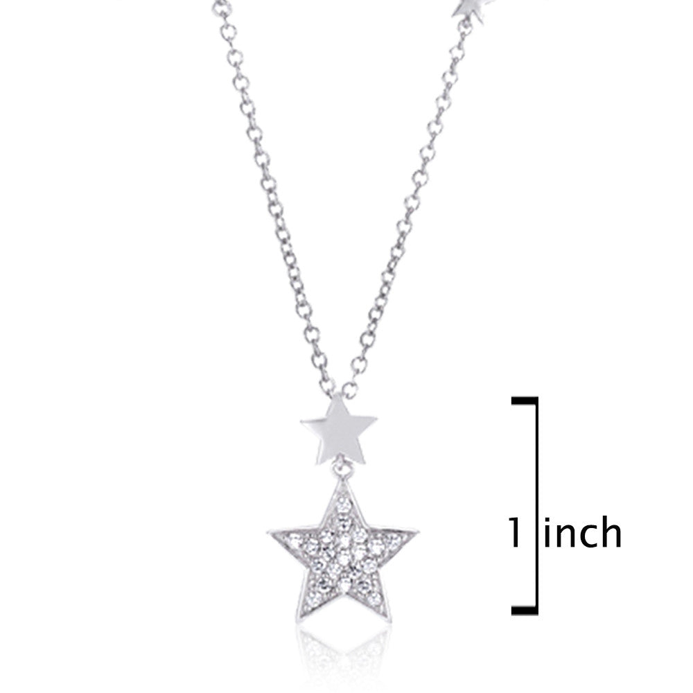 Twin stars contrast each other in this set of classic drop pendant necklace; sparkling clear pavé cubic zirconia stars dangle brilliantly under smooth, polished stars. Ideal for everyday wear and completes trendy look!