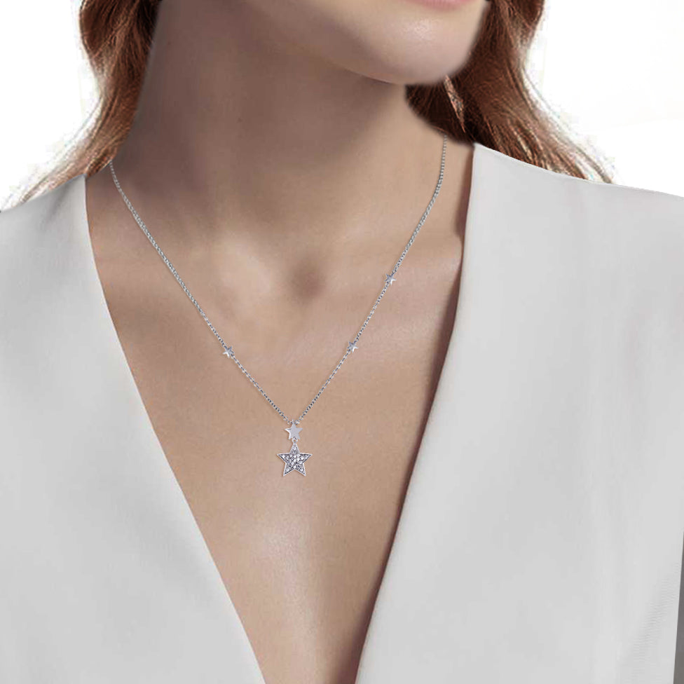 0.32ctw CZ Double Star Pendant Necklace