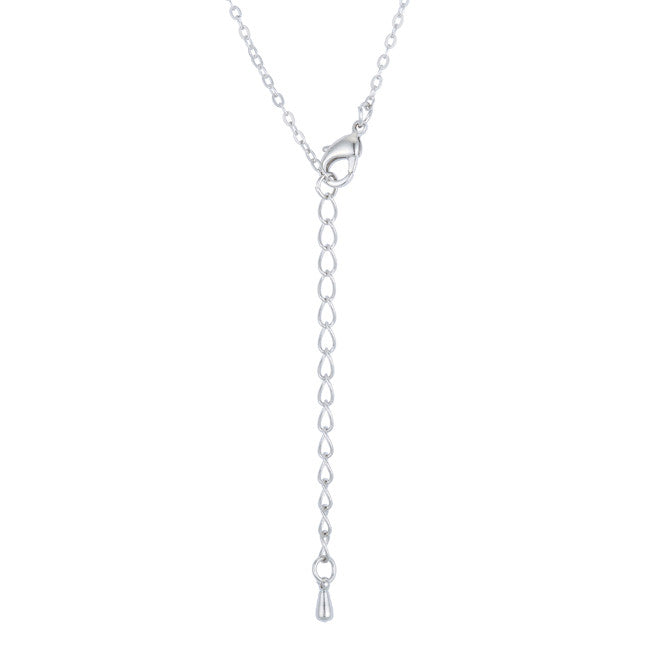 Sterling Silver Curved CZ Bar Necklace in Rhodium Plating