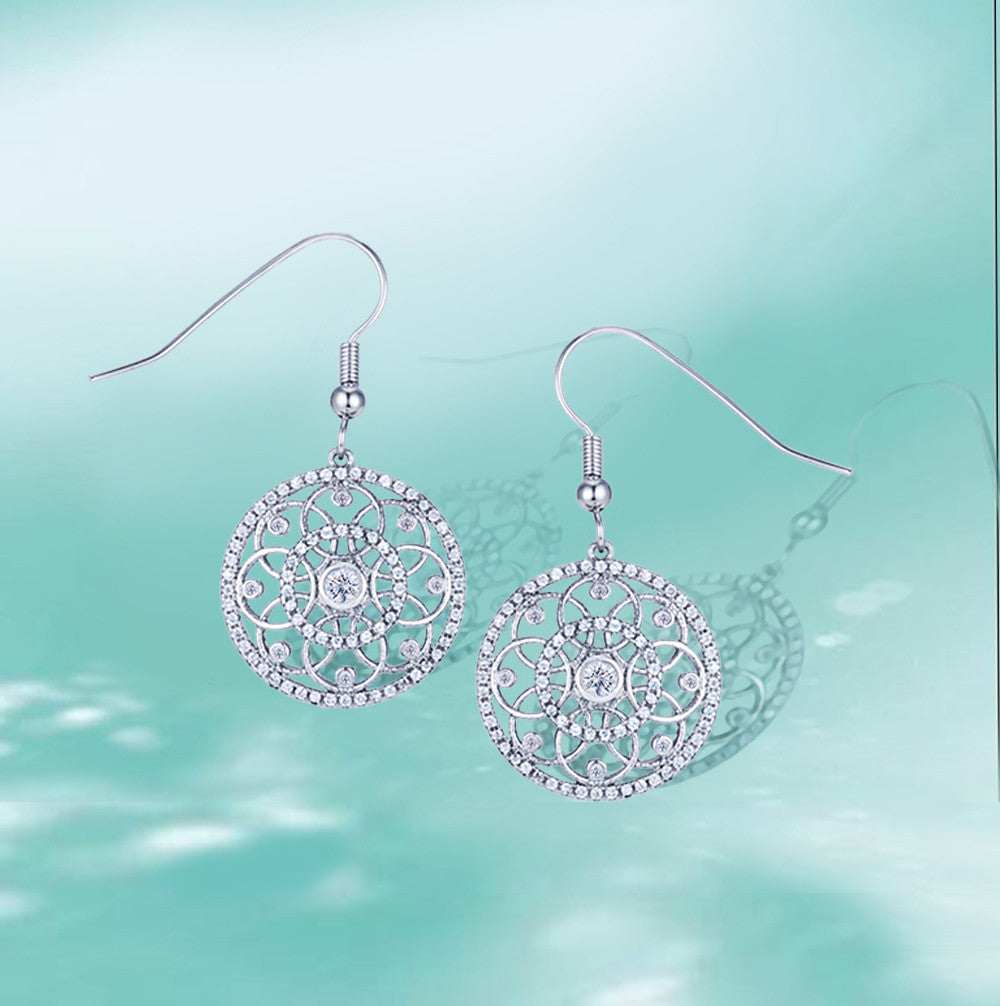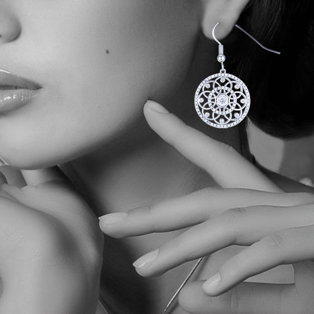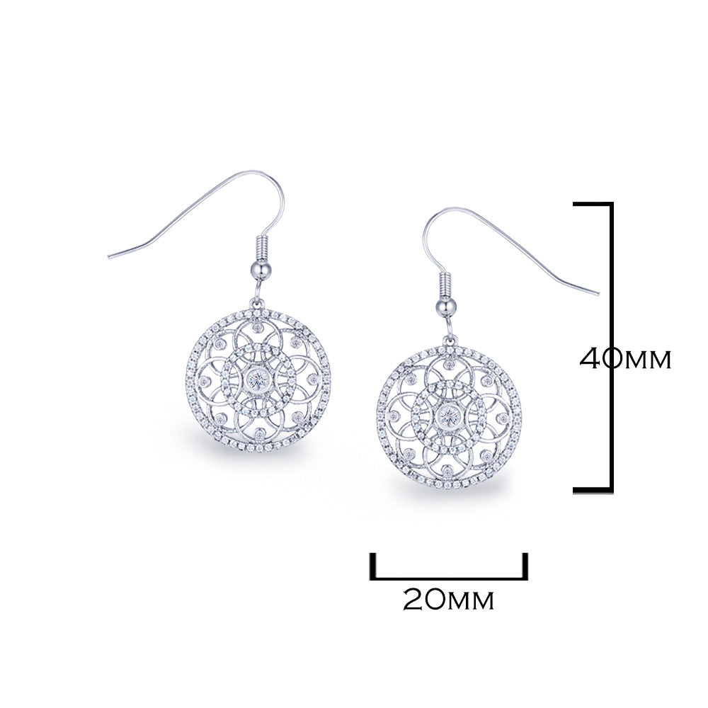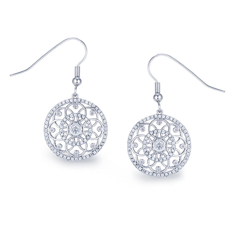 0.98ctw CZ Art Deco Filigree Drop Earrings, Fish Hook