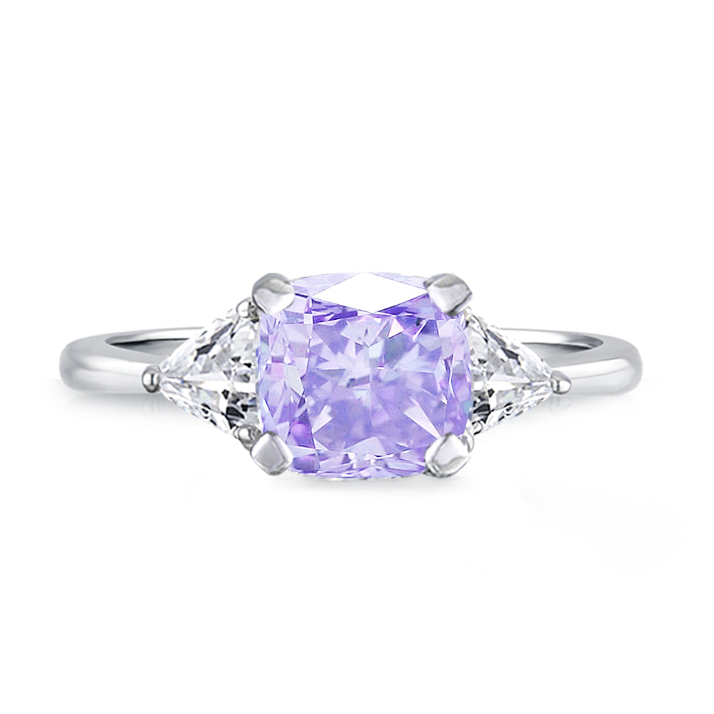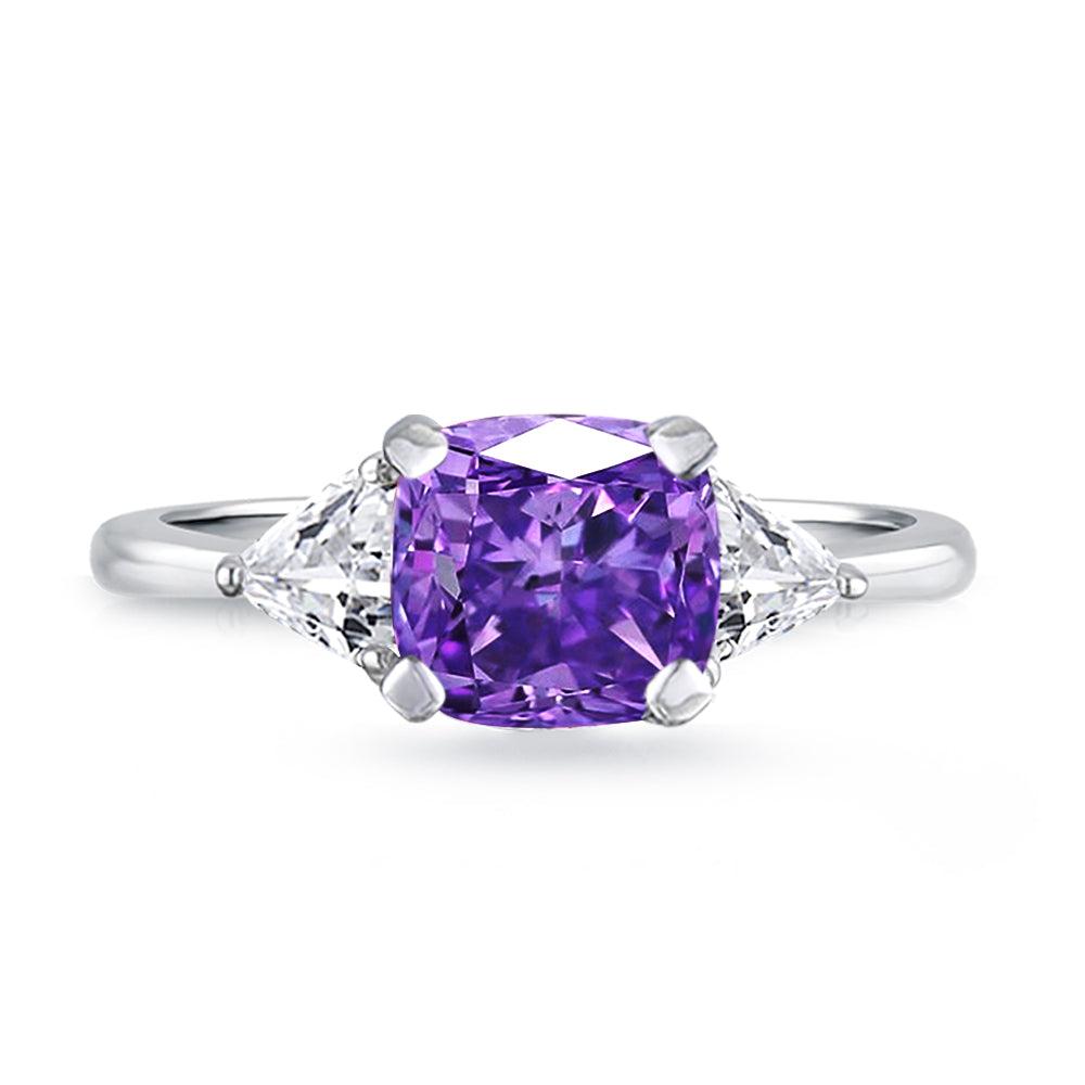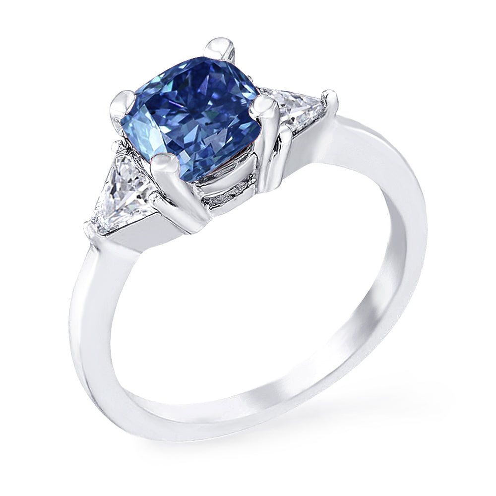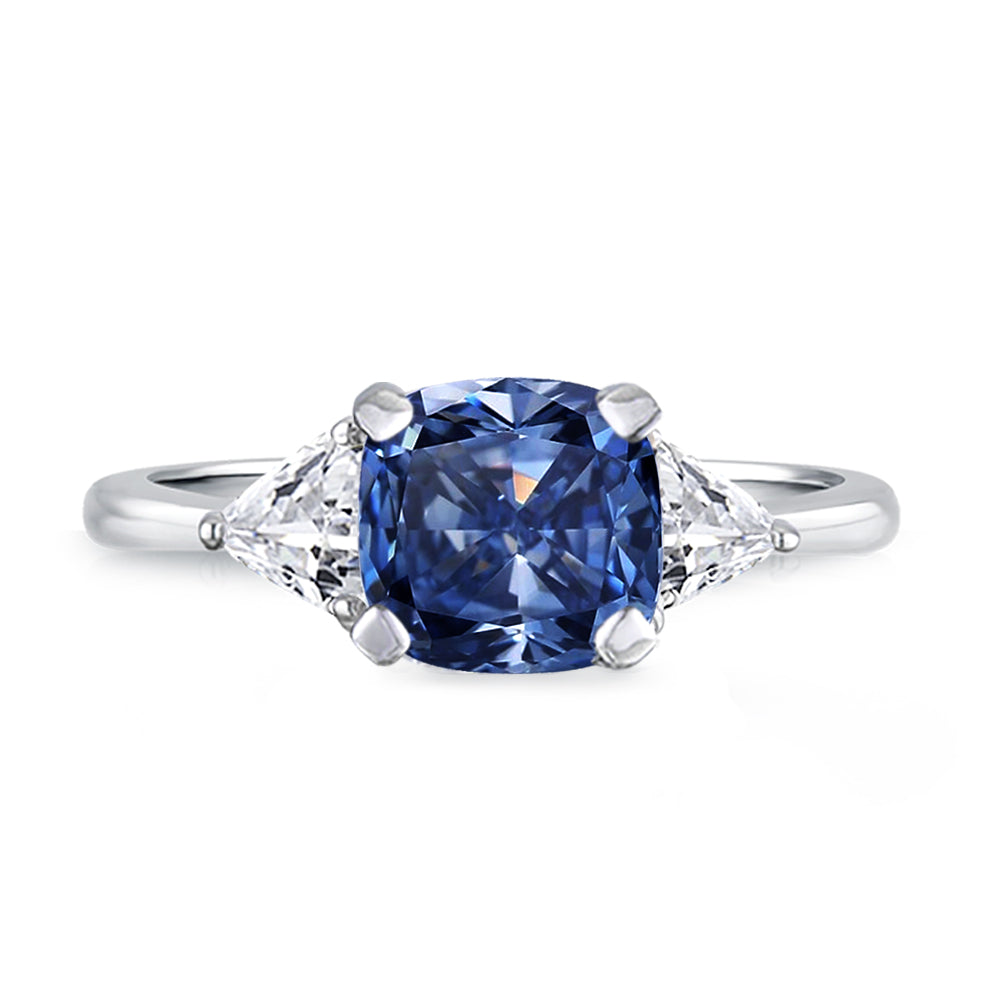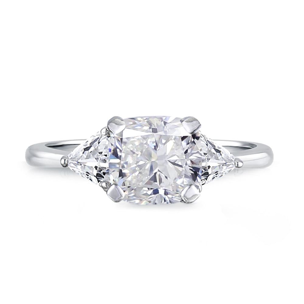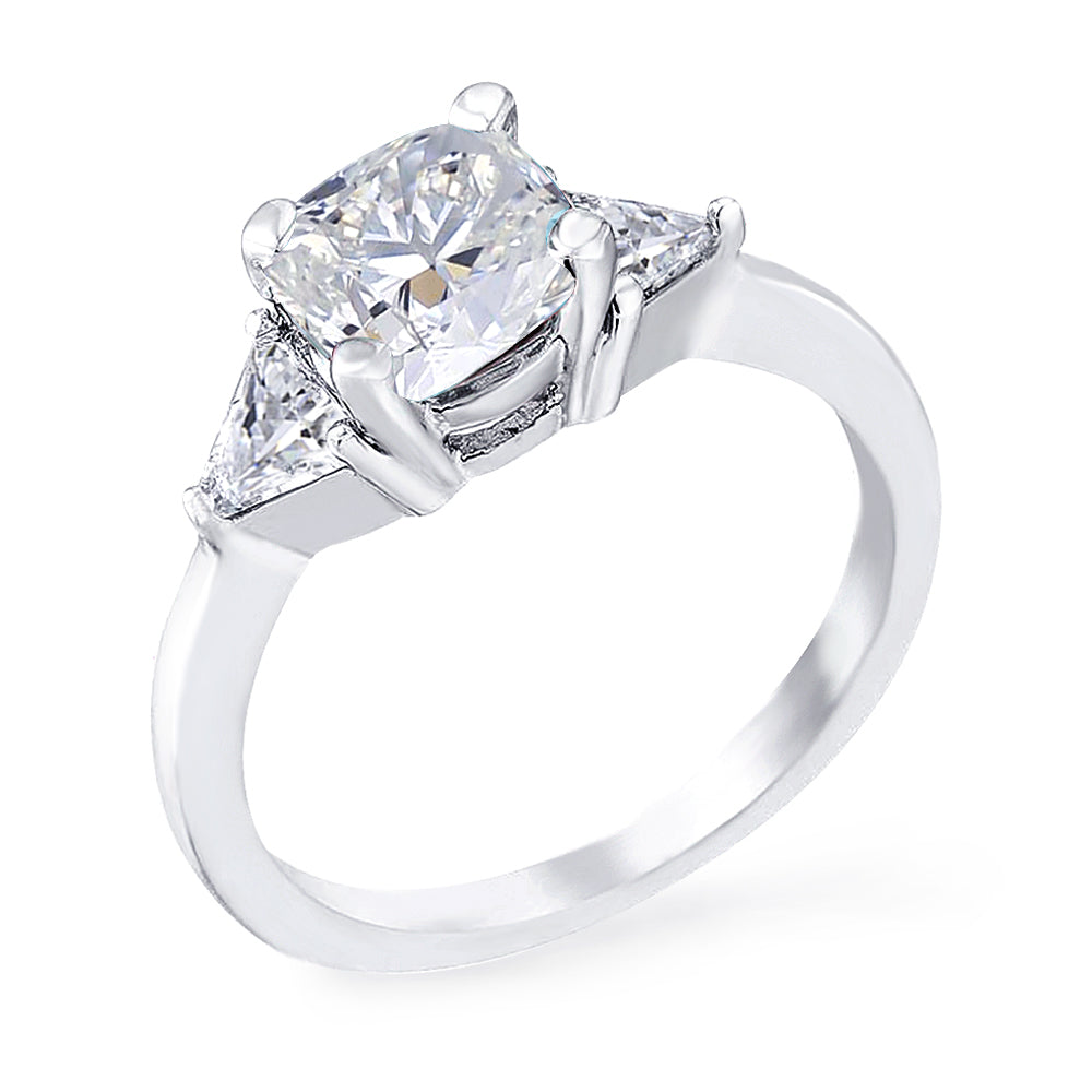 3 Stone with cushion-cut cubic zirconia center stone creates air of glamour with 2 trillion-cut side stones. Painstakingly matched quality and proportion.