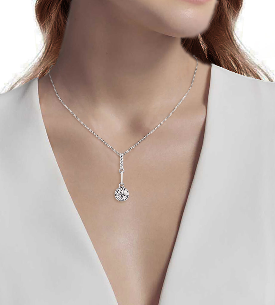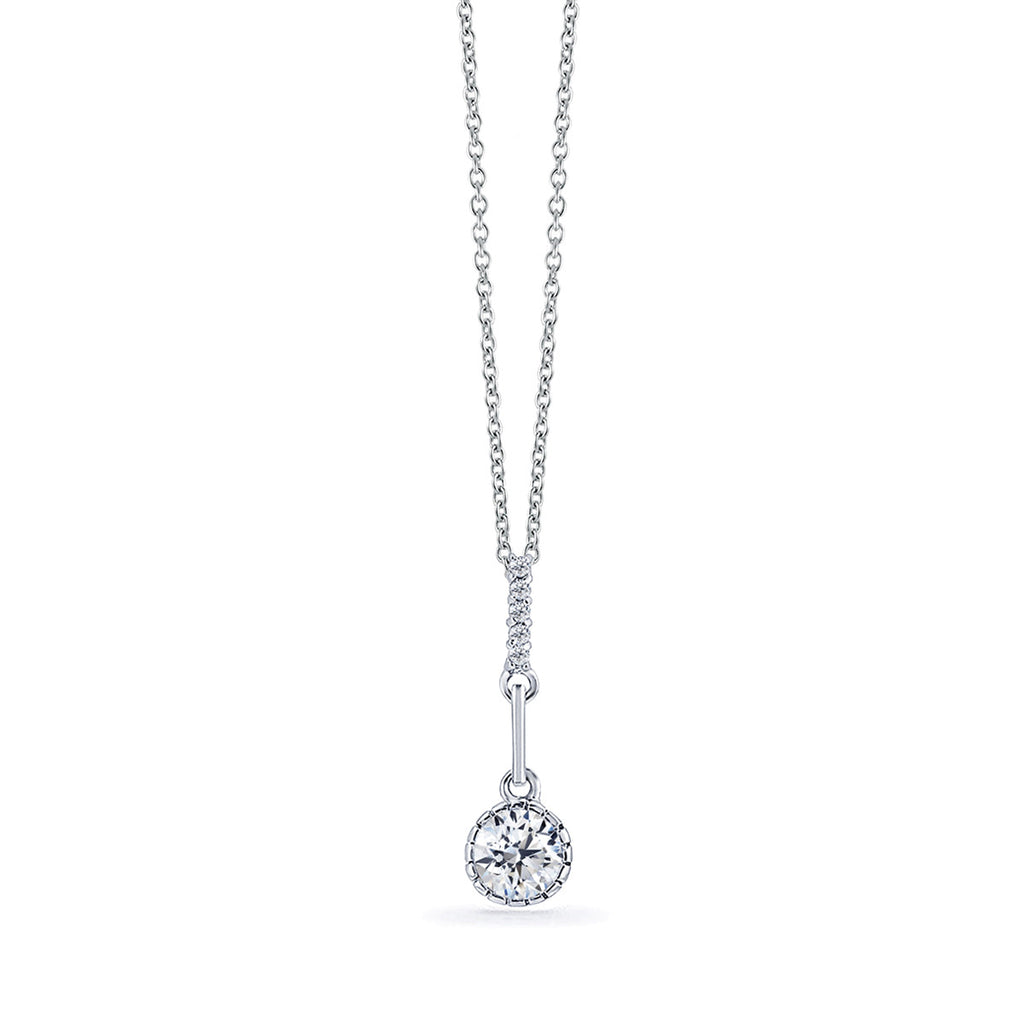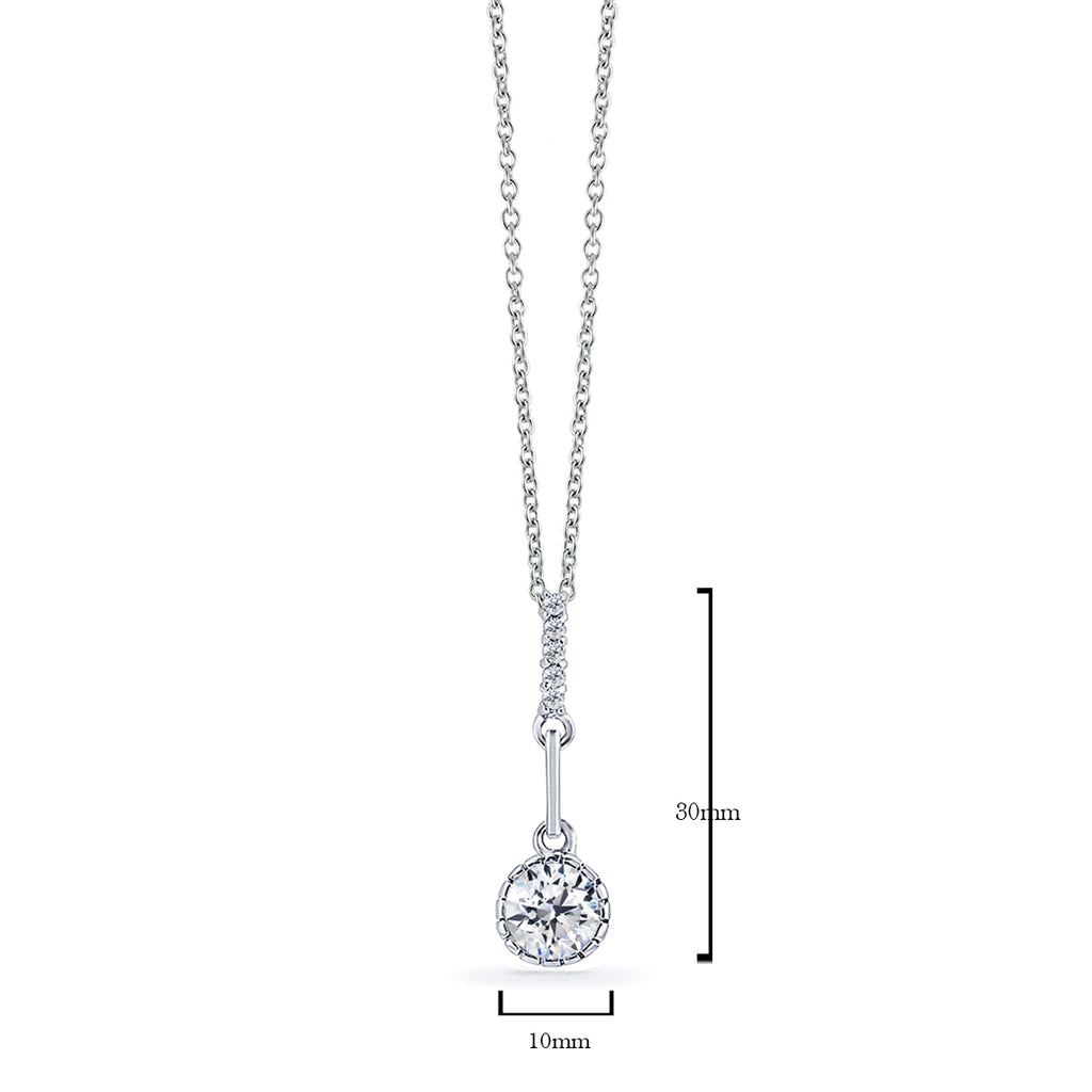 Round brilliant cubic zirconia catches the light to create blazing sparkles. Drop necklace made with genuine rhodium plating and cubic zirconia in bezel setting. 2.12 carat total weight.