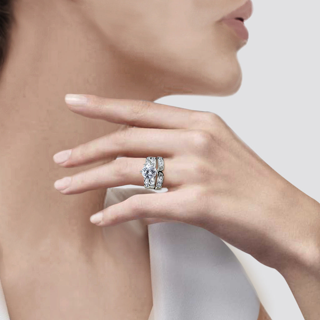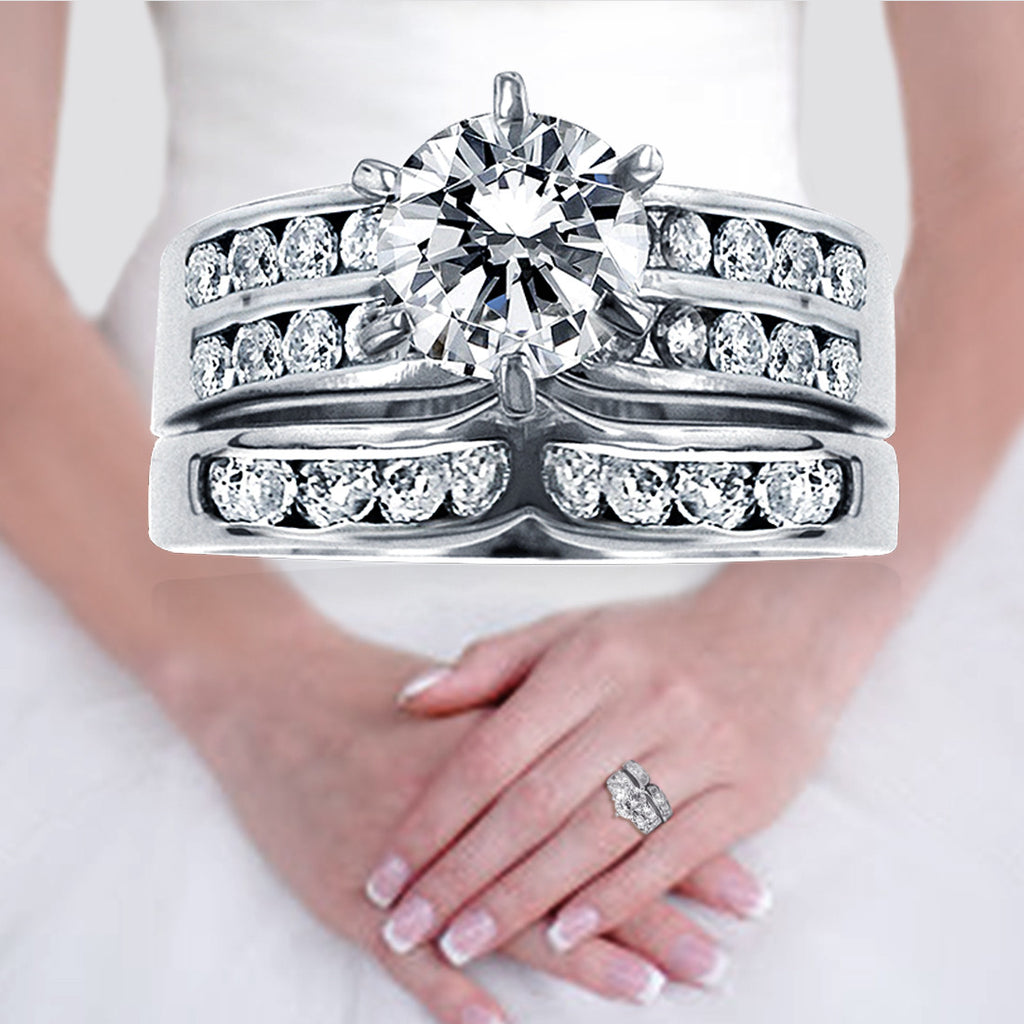 Luxury and Elegant Solitaire Ring Set is made with Heavy Layered Genuine Rhodium Plating and Top Quality Cubic Zirconia. This Long Lasting Lustrous Bridal Set is Made with Perfection and Masterful Craftsmanship.