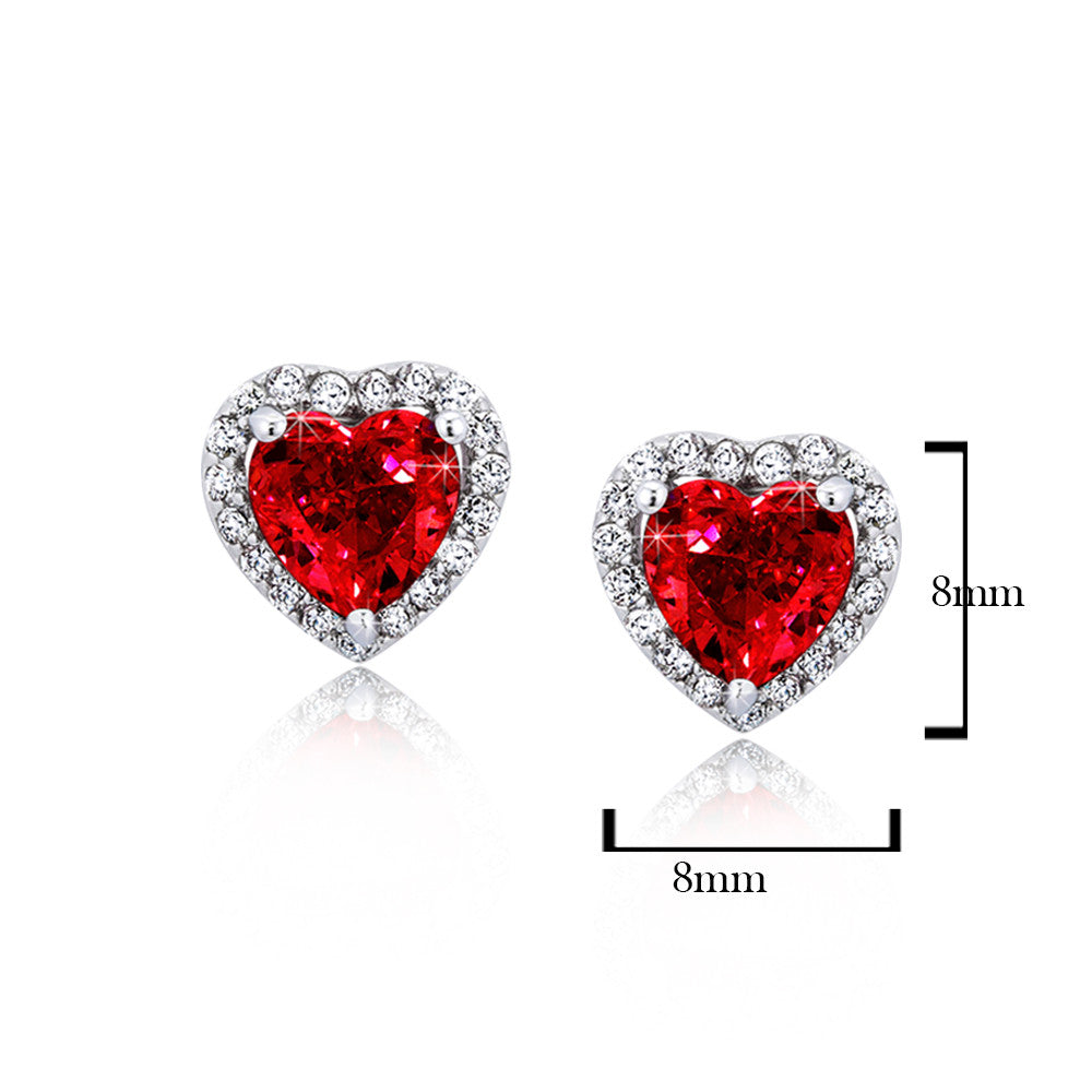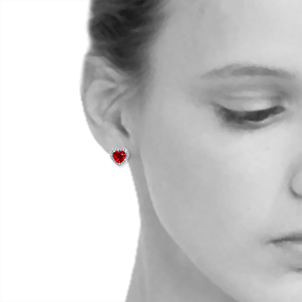 2.48 ctw Red Heart CZ Solitaire Halo Stud Earrings