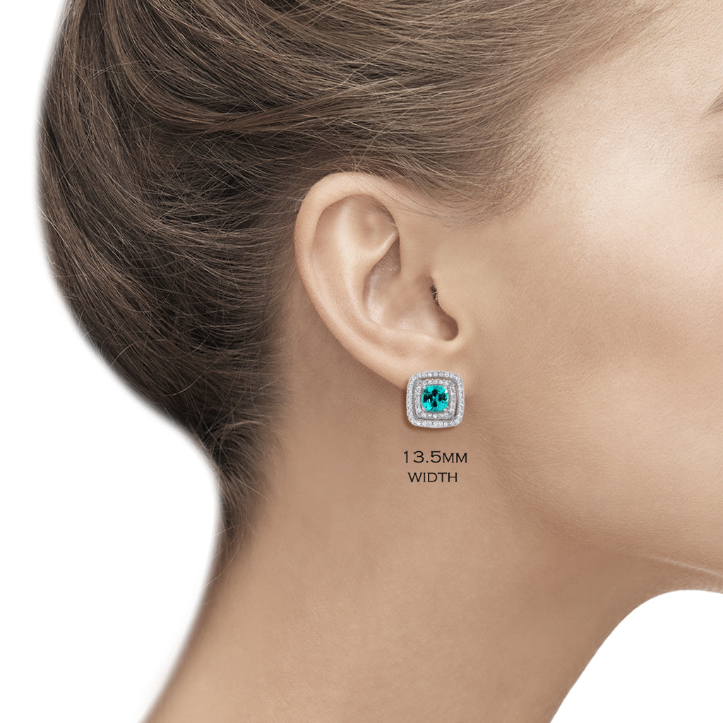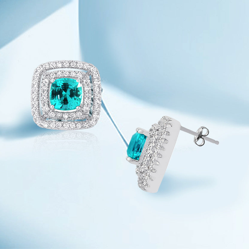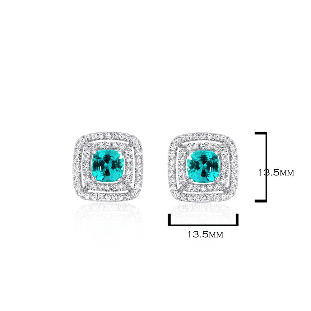 2.72ctw Turquoise Princess CZ Halo Stud Earrings