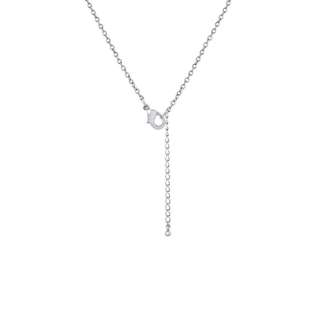 Sterling Silver Curved CZ Bar Necklace in Rhodium Plating