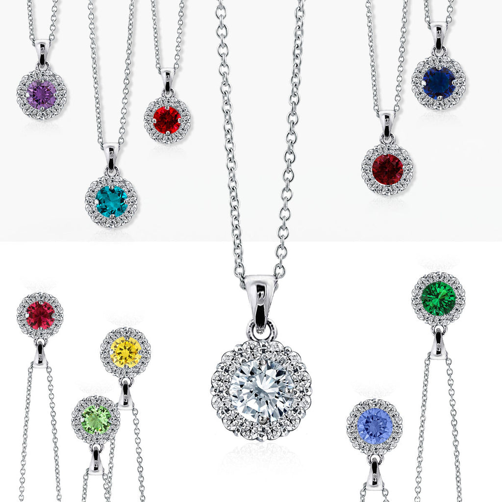 This Beautiful Timeless Halo Pendant Birthstone Necklace Sparkles like Diamonds. This Popular Necklace will Enhance your look for Special Occasions and for years to come.