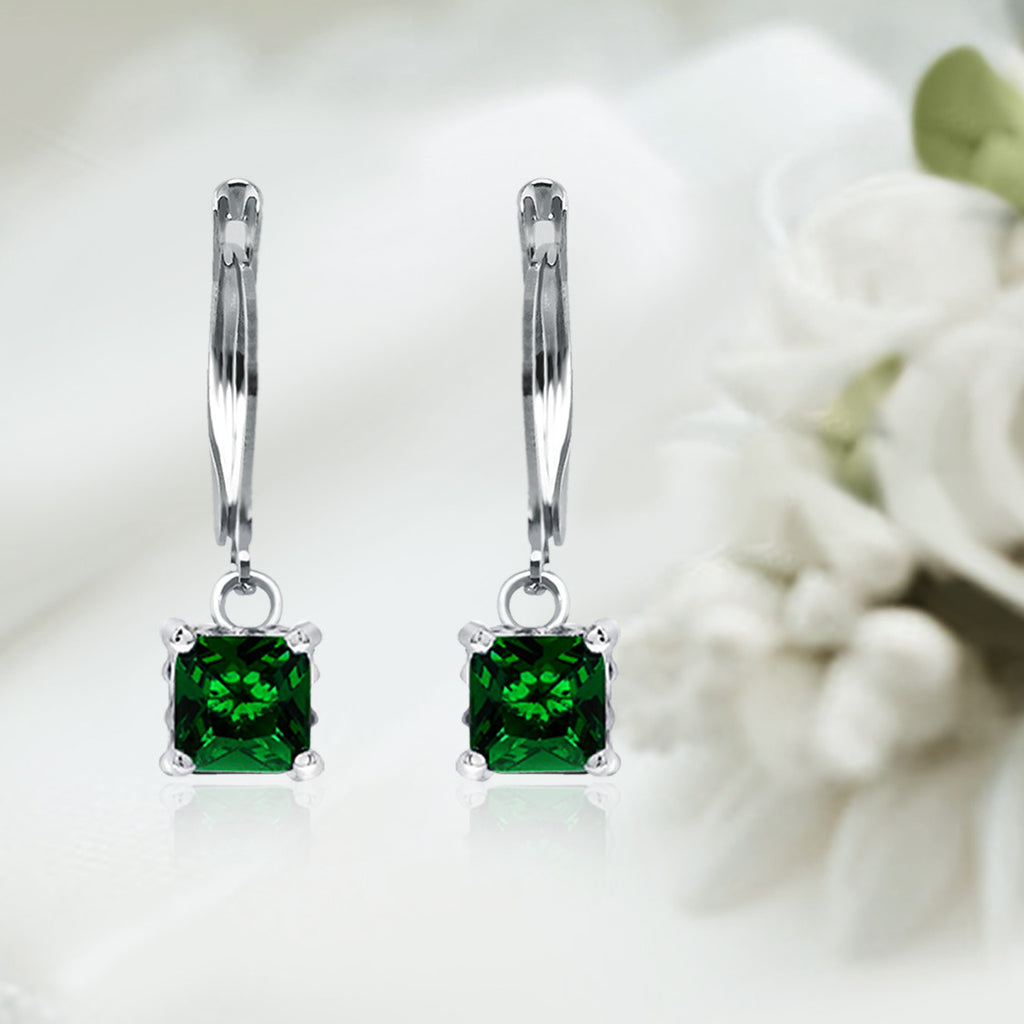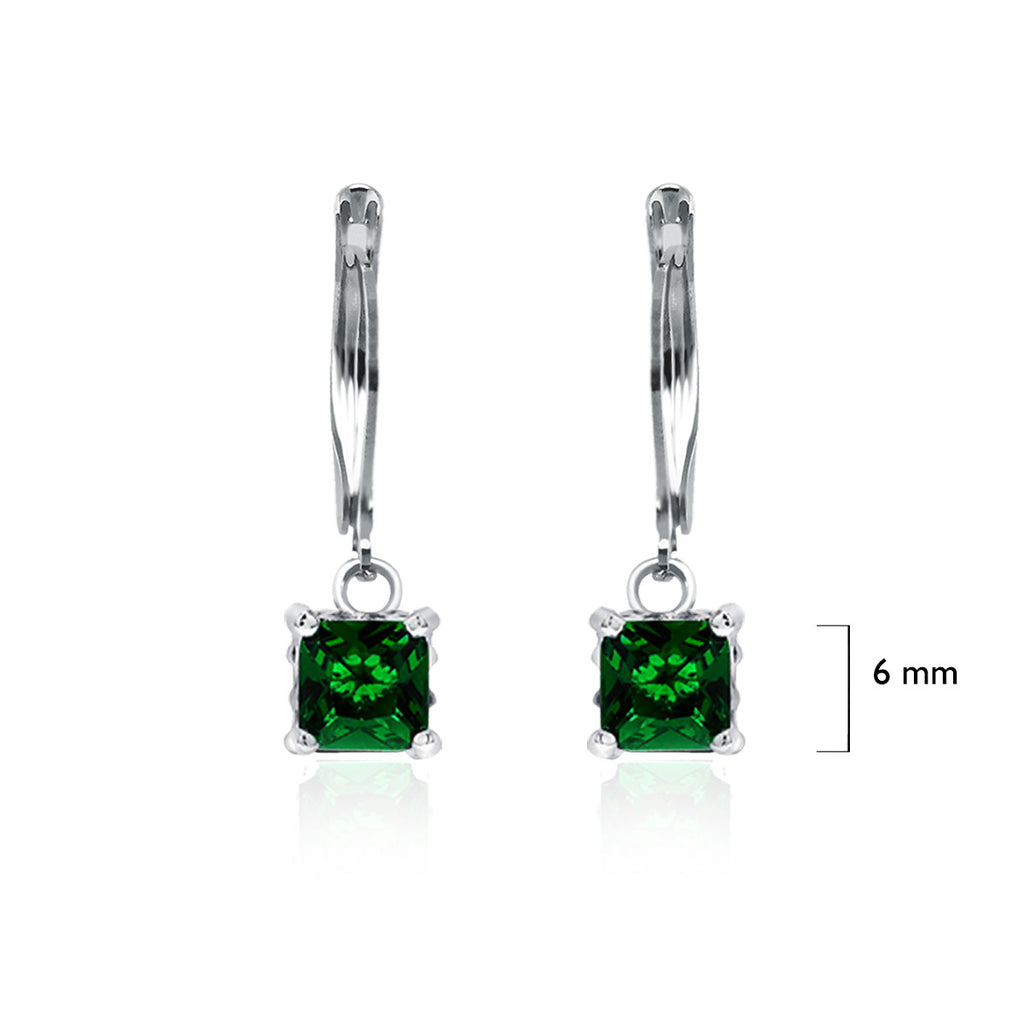 3.02ctw Emerald Green Princess CZ Solitaire Dangle Earrings
