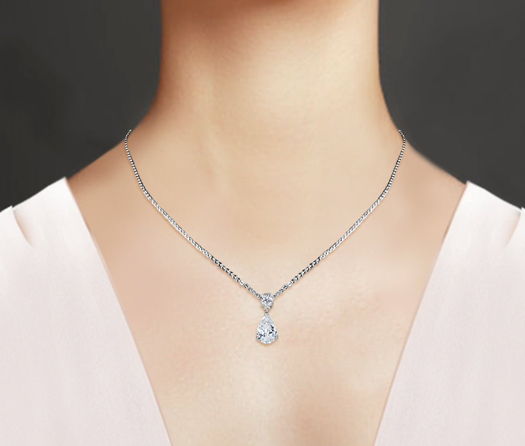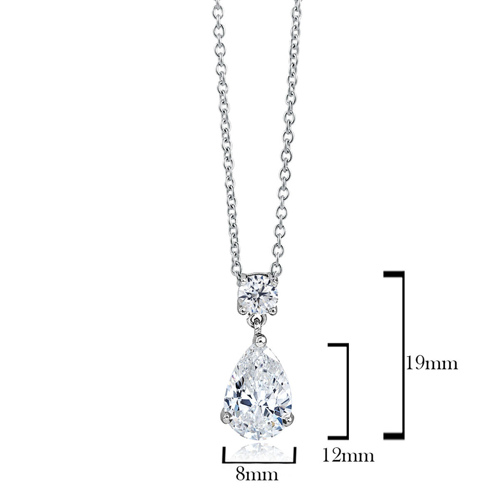 This exquisitely cut pear-shaped cubic zirconia pendant radiates with fiery intensity. Pendant is made with heavy layered genuine rhodium plating. Comes with a 16" chain with a 2" extension. Total carat weight 3.46.