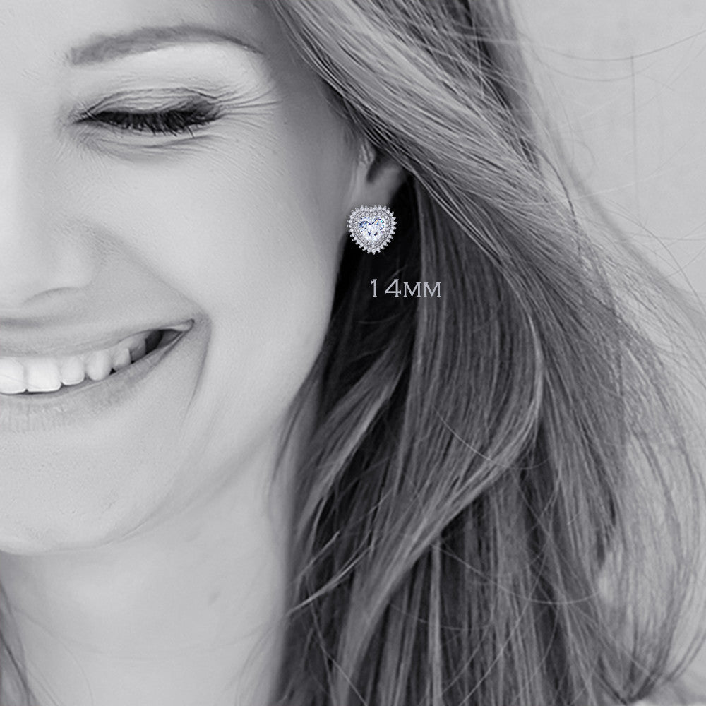 5.68ctw Heart CZ Halo Stud Earrings, 14mm