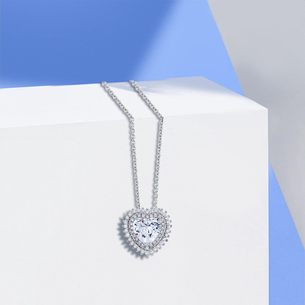 6.49ctw Heart CZ Halo Pendant Necklace, 16"+2" Extender
