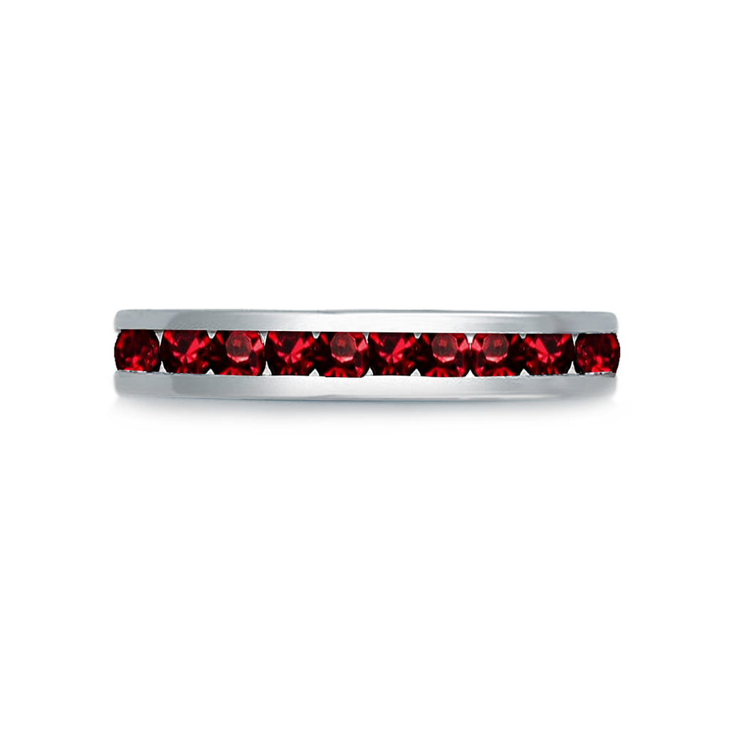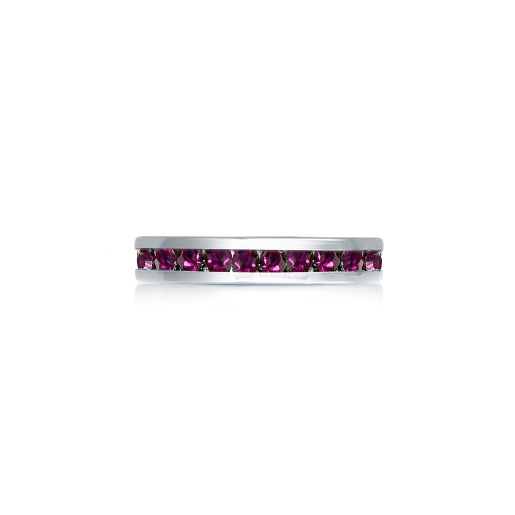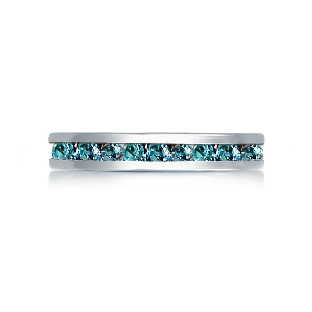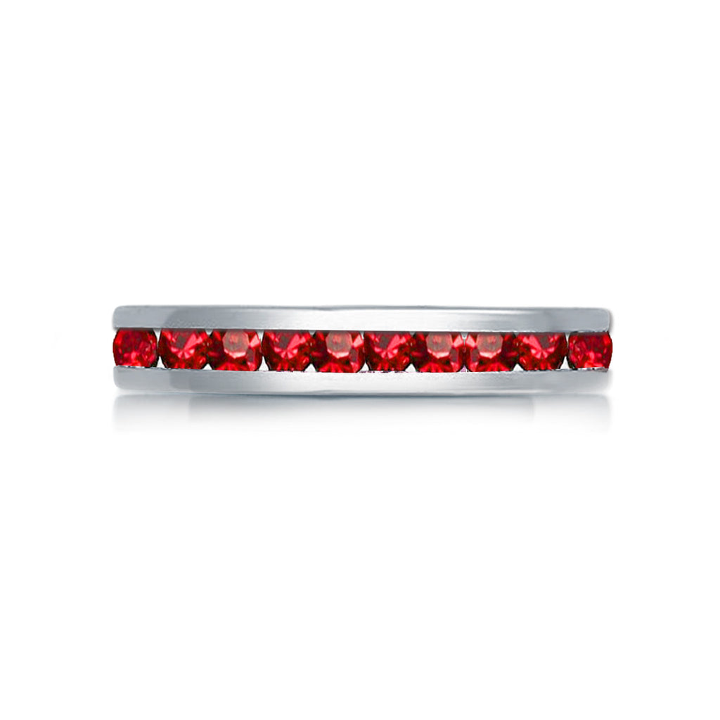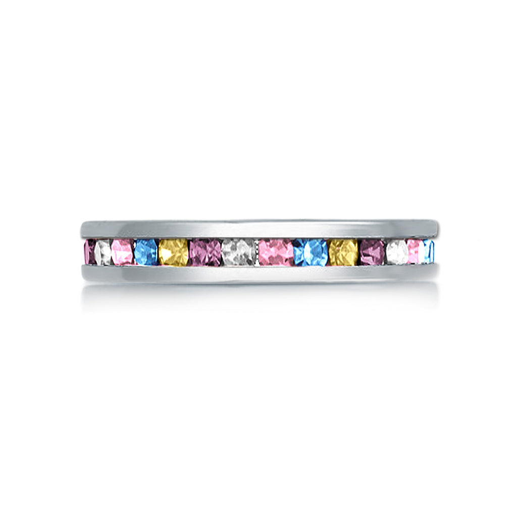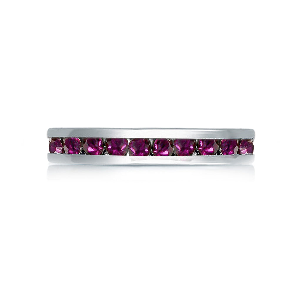 Silver -tone Channel Set Eternity Ring in Birthstone Color, 3 mm