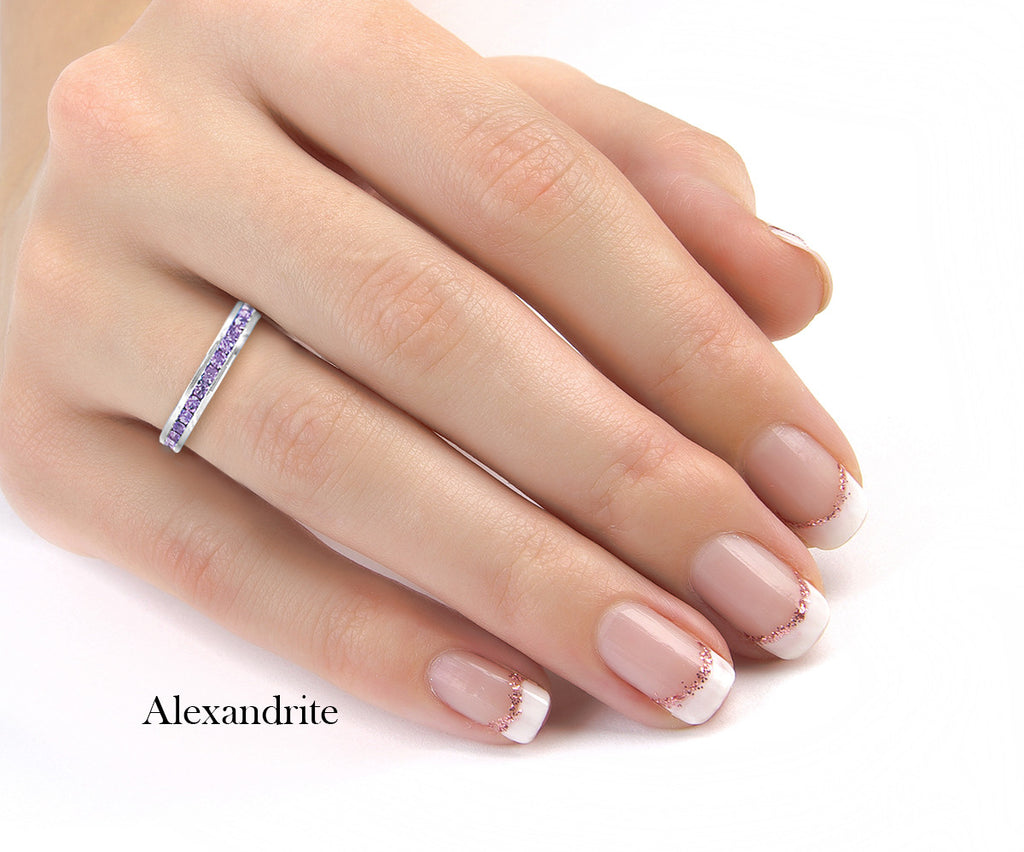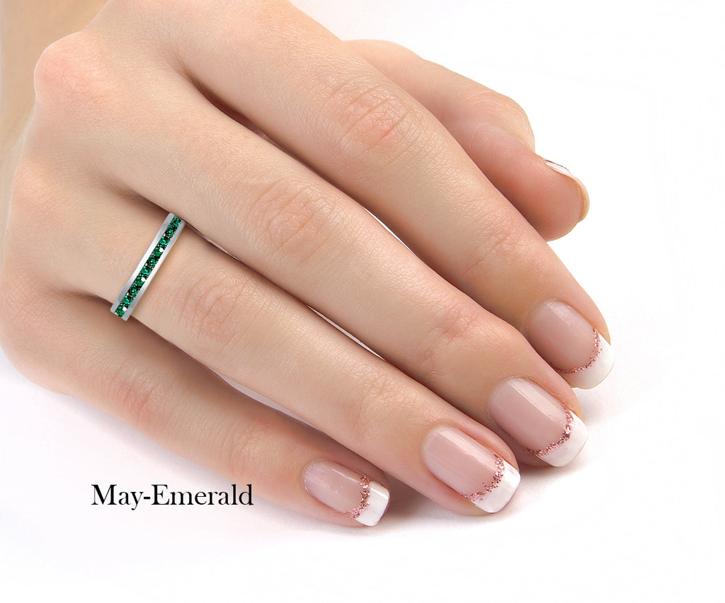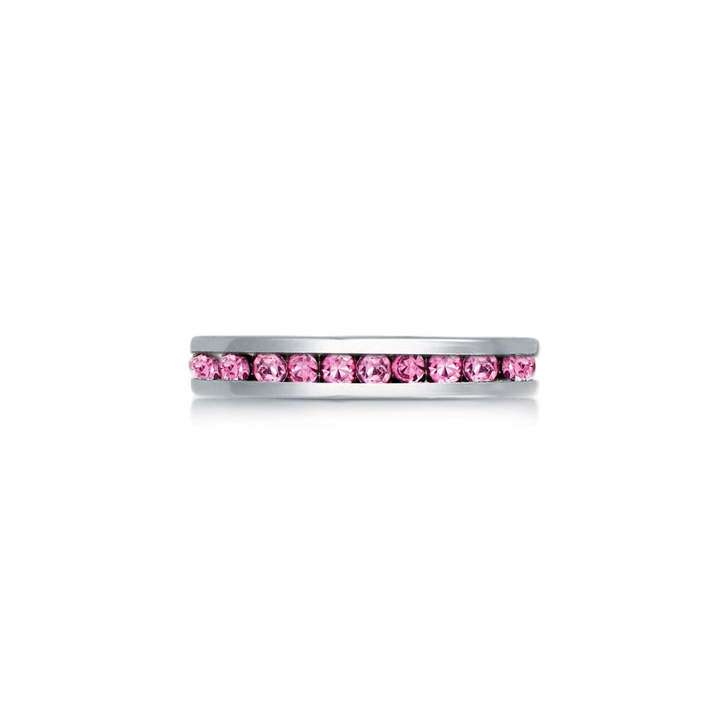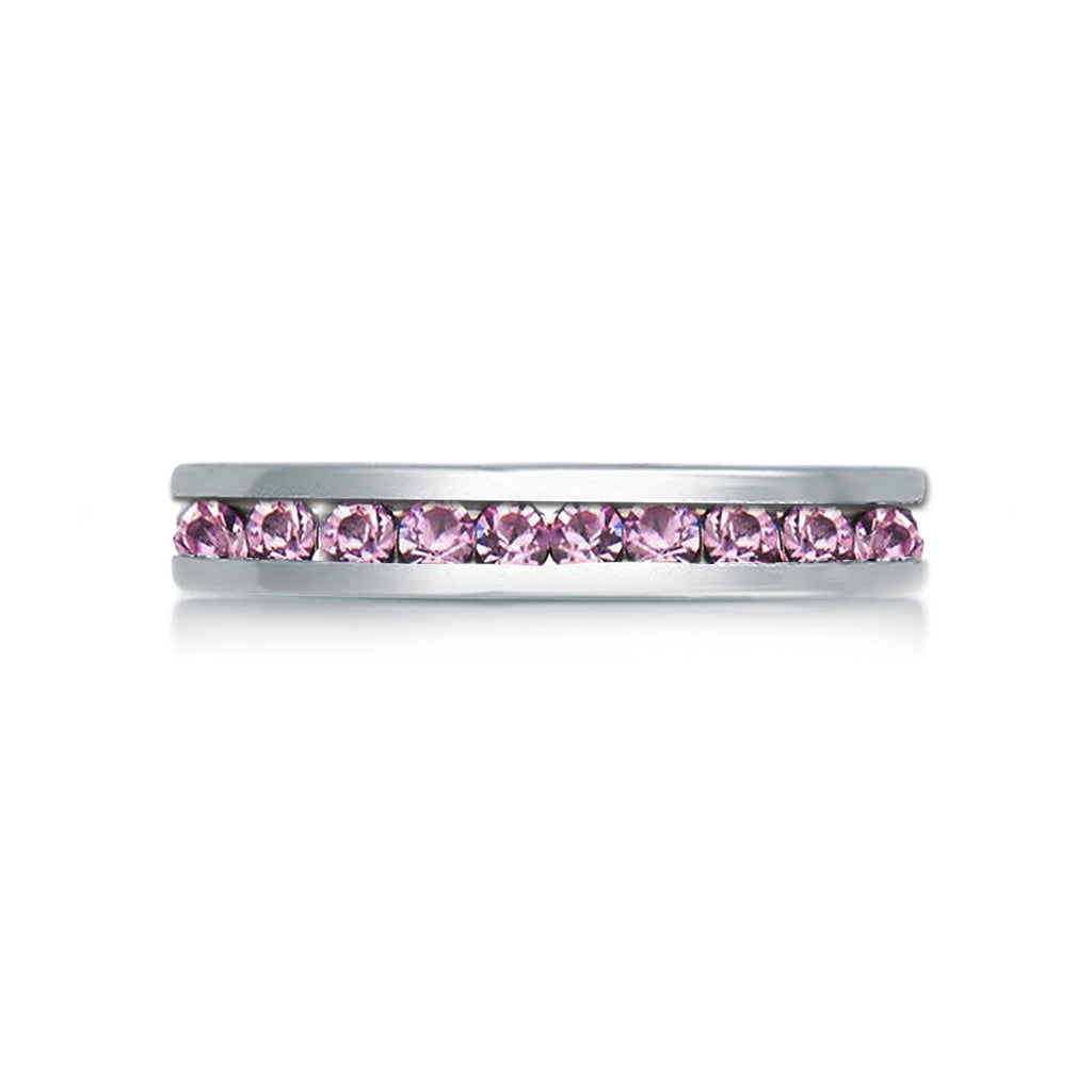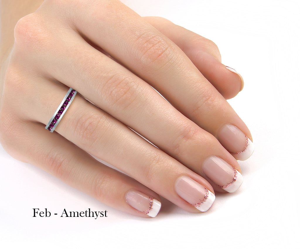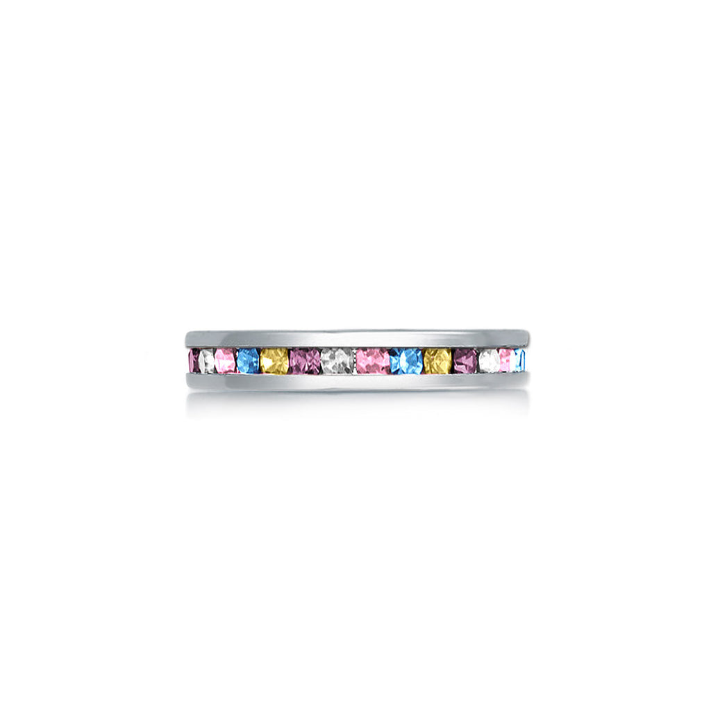 Silver -tone Channel Set Eternity Ring in Birthstone Color, 3 mm
