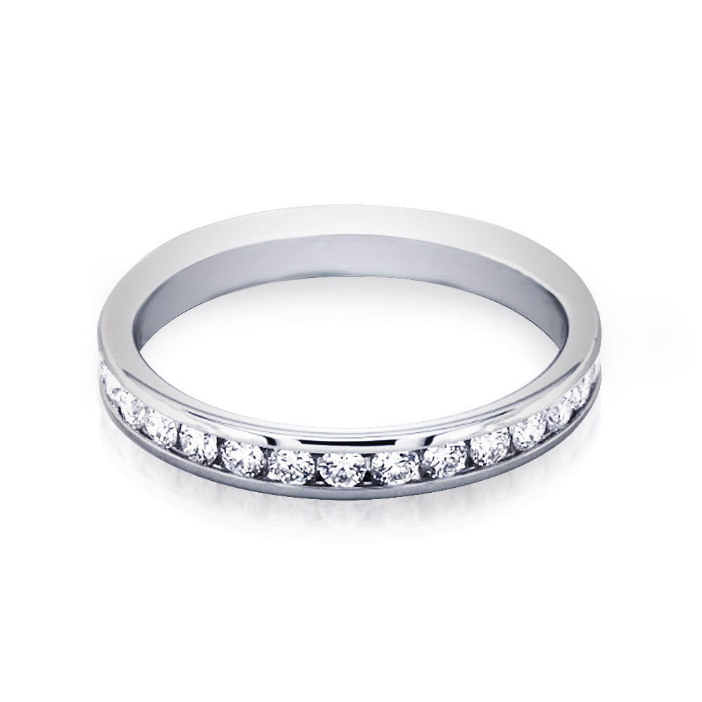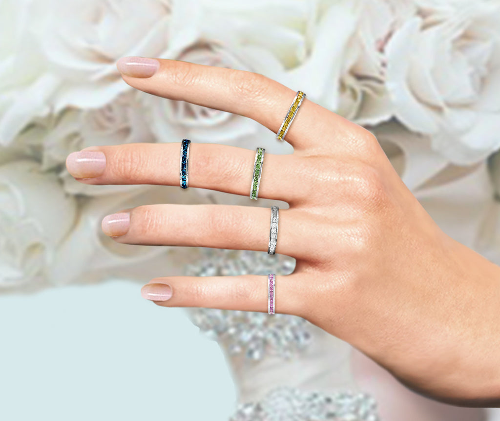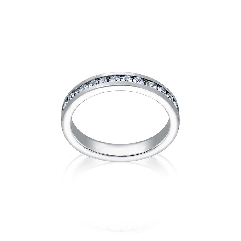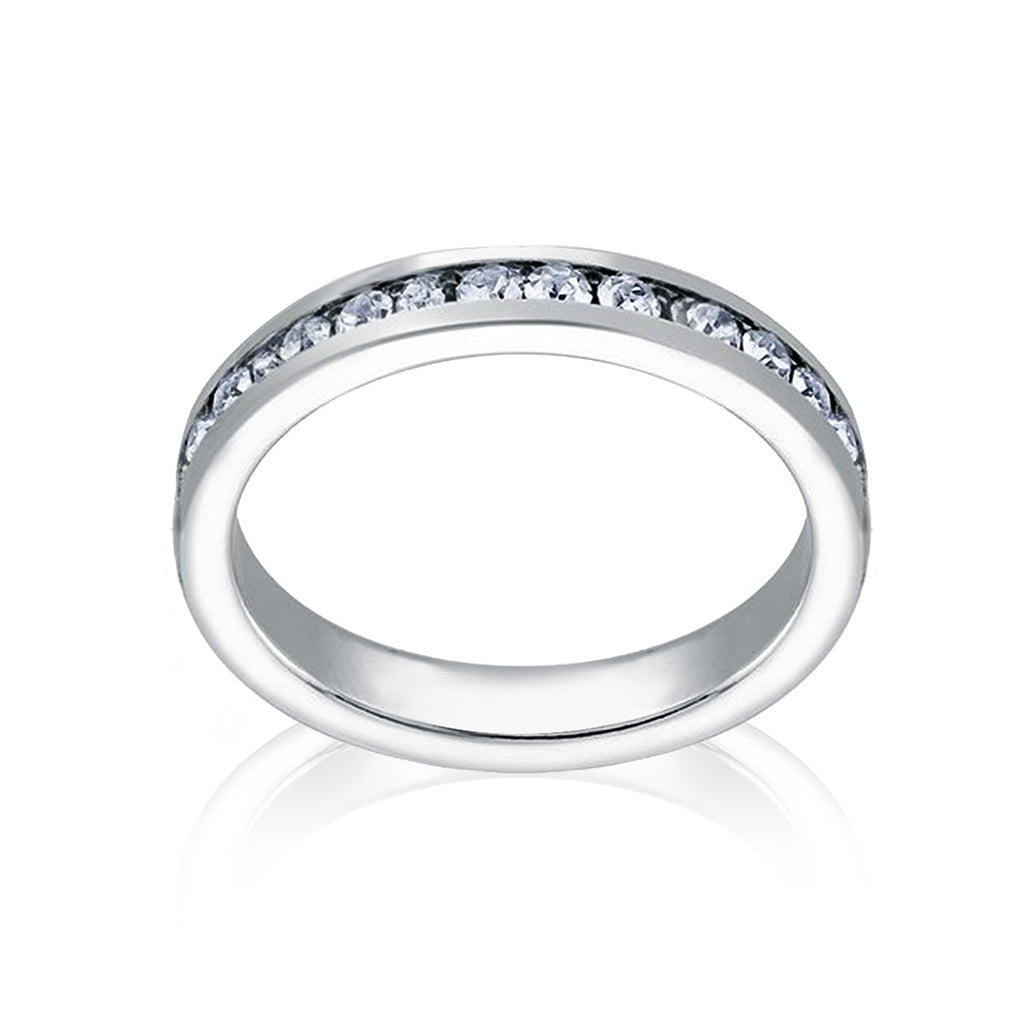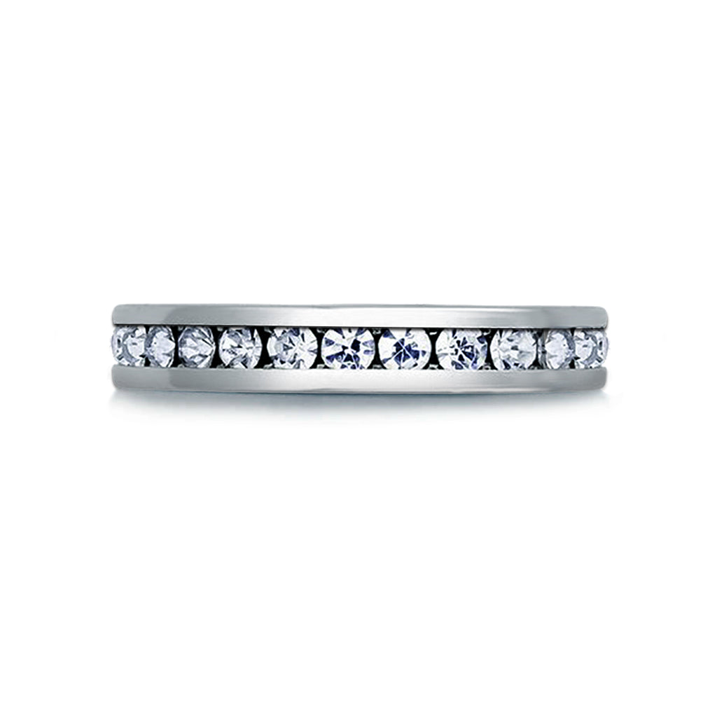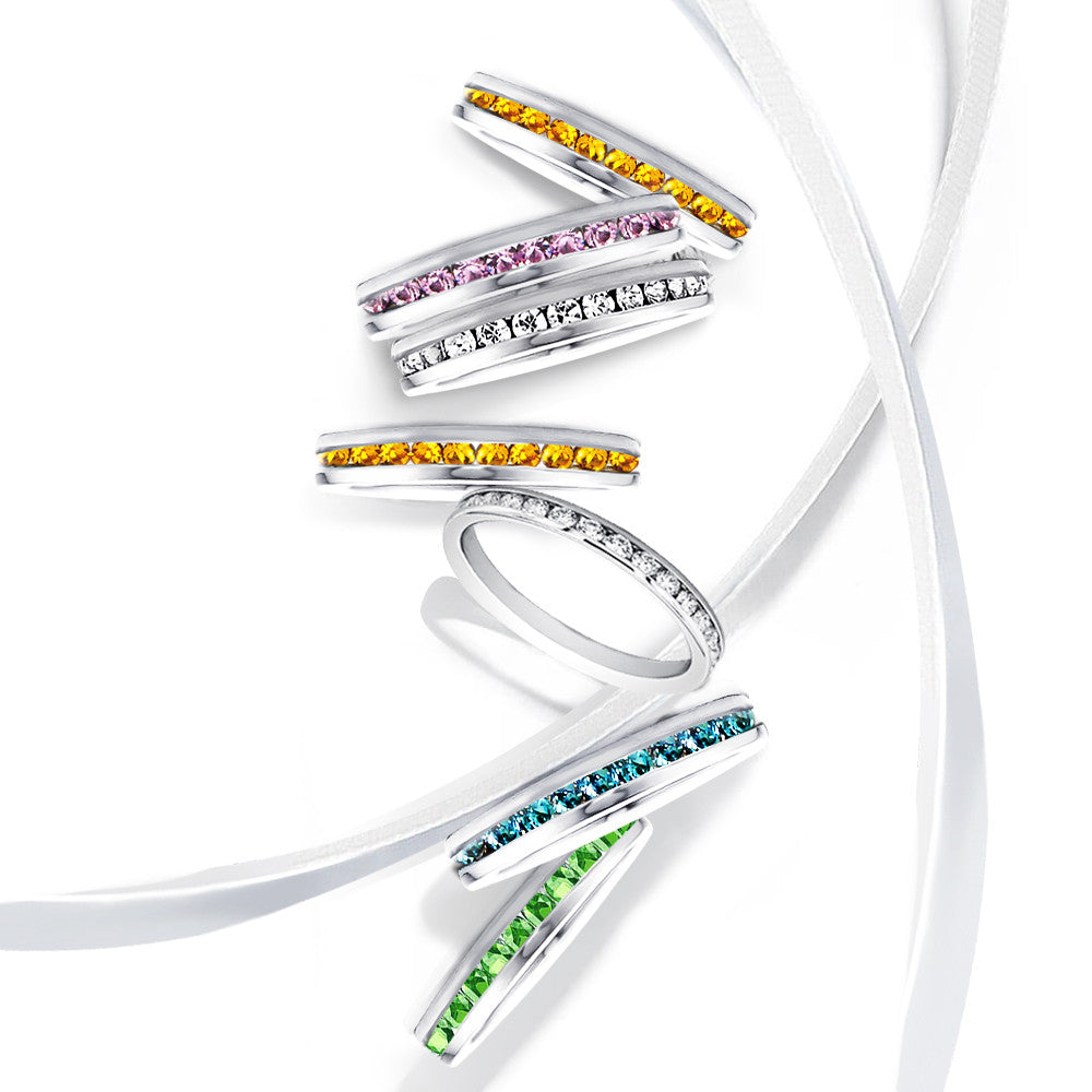 Silver -tone Channel Set Eternity Ring in Birthstone Color, 3 mm