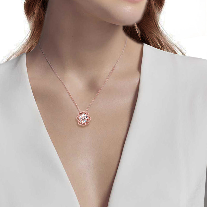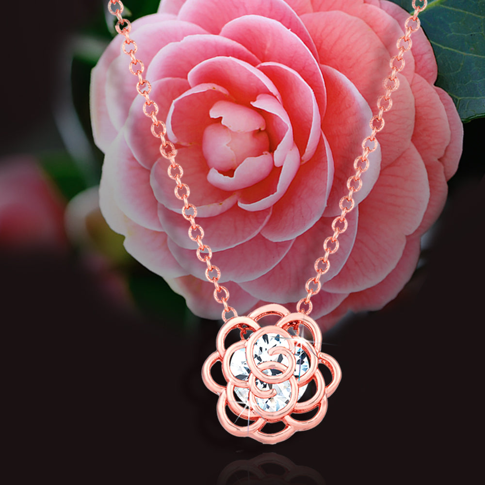 Camelia Necklace in Rose Gold Plating with 1.28 carat CZ