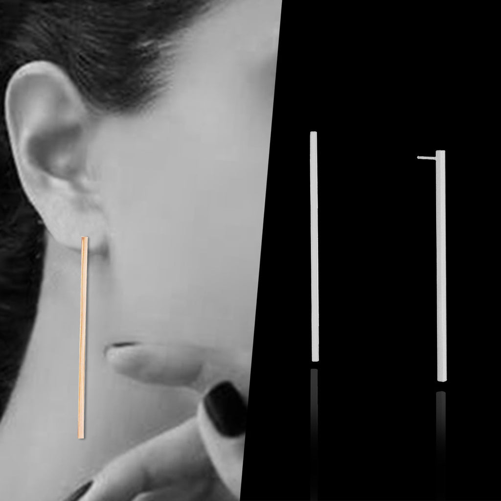 These simple bar drop earrings are chic, fun, and create a fresh and impeccable look. Made with 18K rosegold and rhodium plating on stainless steel.