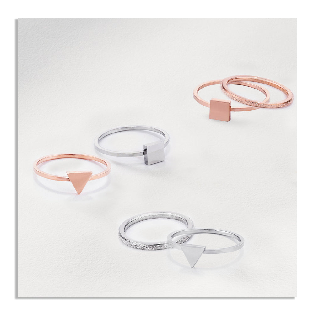 Stainless Steel Triangle Stackable Ring in Rose Gold Plating, 1 mm Band