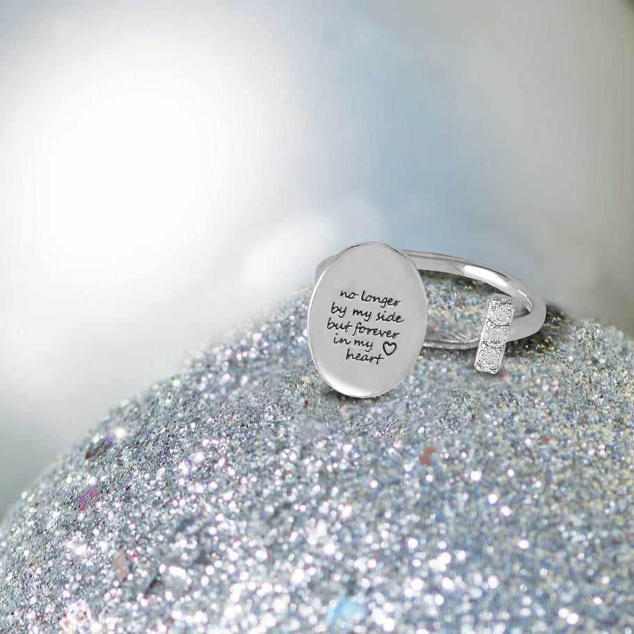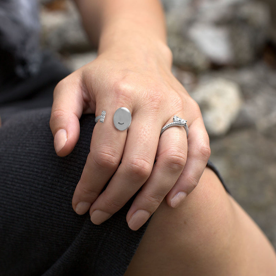 Sterling Silver Engravable Oval Disc Open Ring with CZ Bar