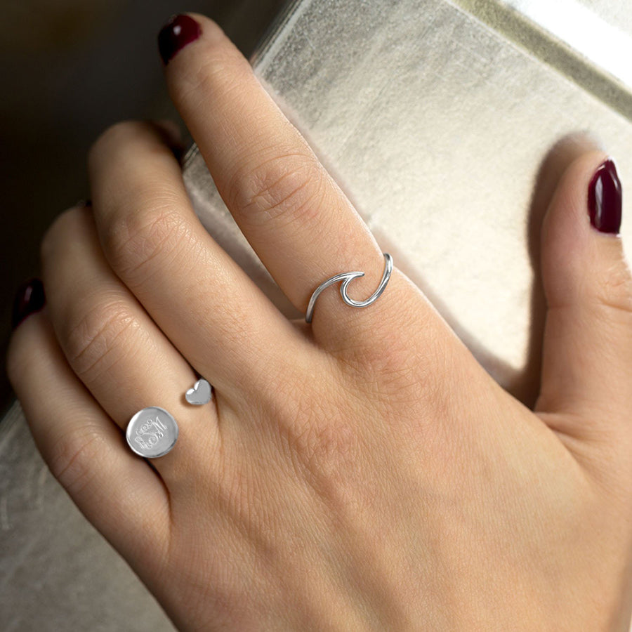 Chic and feminine, this ring features an open band with an engravable disc and a quaint heart to complete a trendy look. A must-have for any modern fashionista, this ring is stackable and easy to match with trendy jewelry pieces. Engrave this ring to add a personal touch for a special gift.