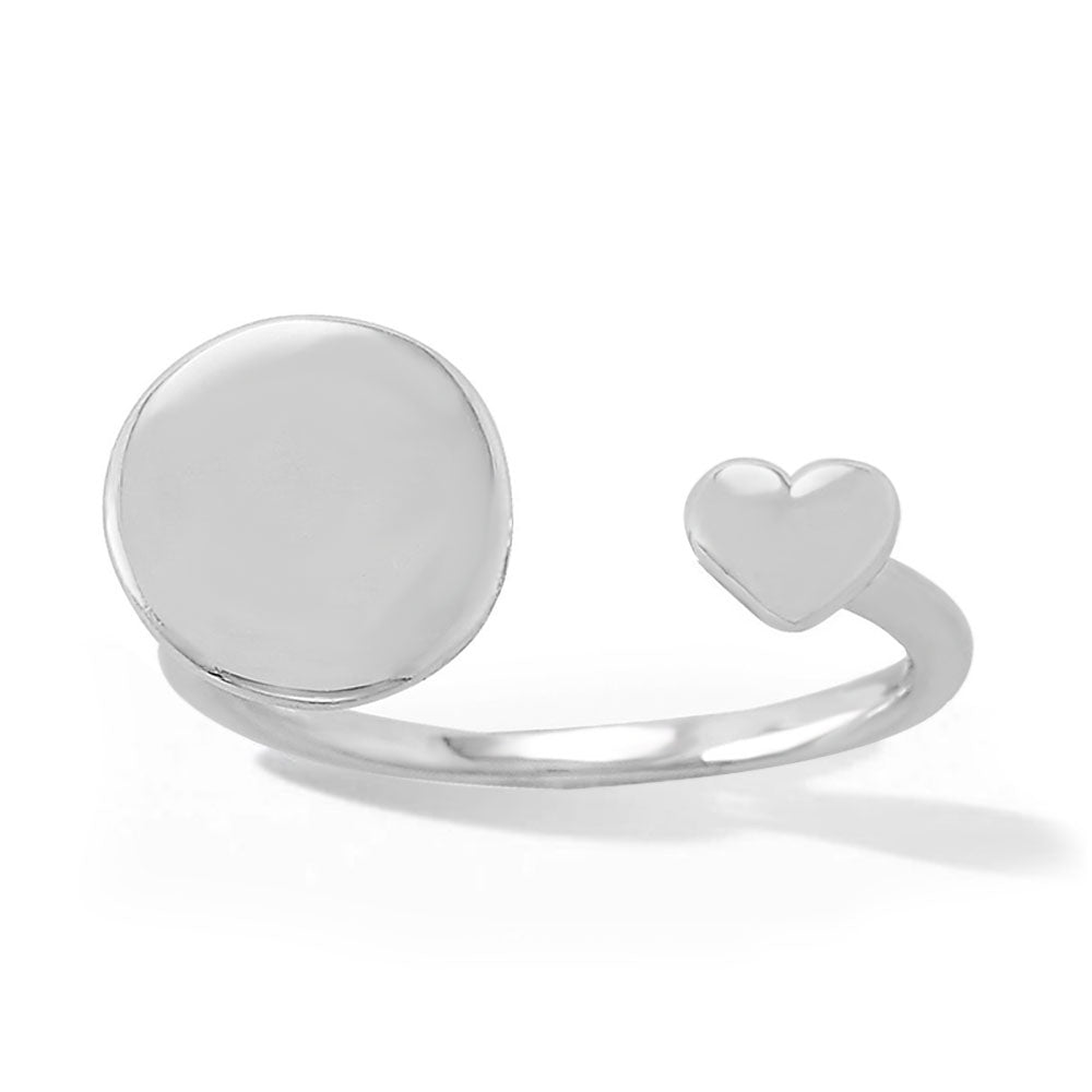 Sterling Silver Engravable Round Disc Open Ring with Heart