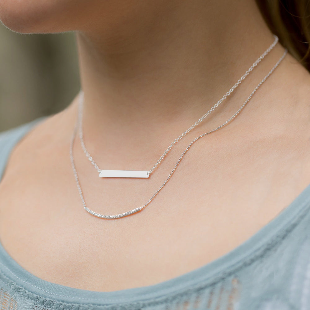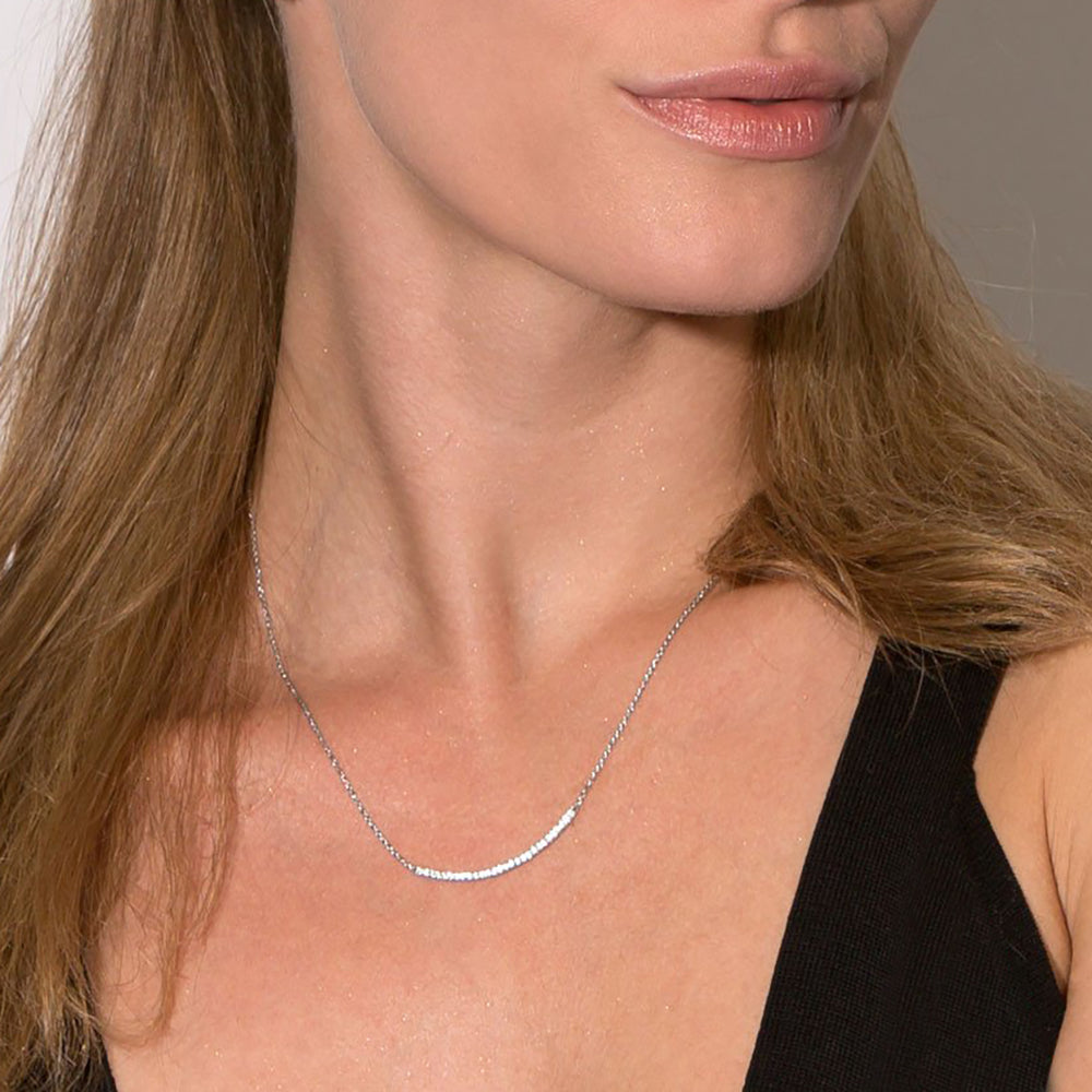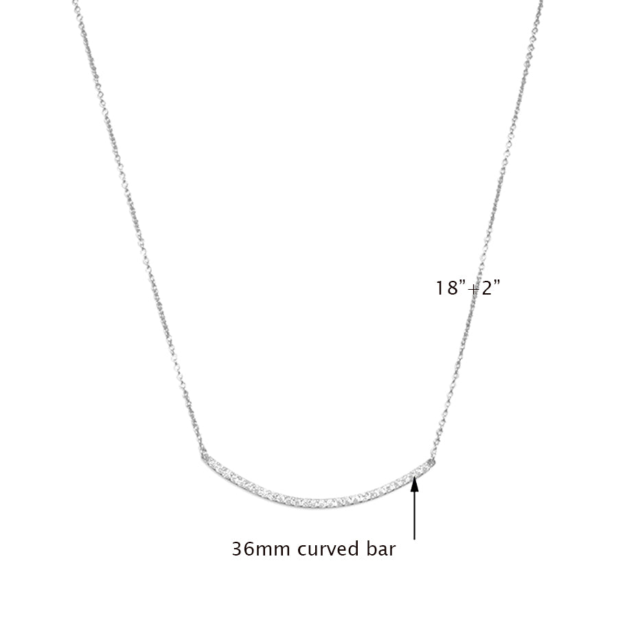 Sterling Silver Curved CZ Bar Necklace in Rhodium Plating